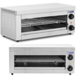 Opiekacz marki Royal Catering sprawdzi się w branży gastronomicznej. Umożliwia przygotowanie tostów, bagietek oraz różnego rodzaju zapiekanek. Urządzenie posiada moc 2000 W, temperatura regulowana jest w zakresie 50-300°C. Wbudowany timer w zakresie 0-15 min informuje o zakończeniu pracy sygnałem dźwiękowym. Ruszt 30 x 50 cm można umieścić na trzech poziomach o różnych wysokościach. Obudowę urządzenia wykonano ze stali nierdzewnej, jest łatwa w czyszczeniu i higieniczna. Opiekacz wyposażono także w tackę na okruchy. Kompaktowa konstrukcja i gumowe nóżki zapewniają stabilność urządzenia.