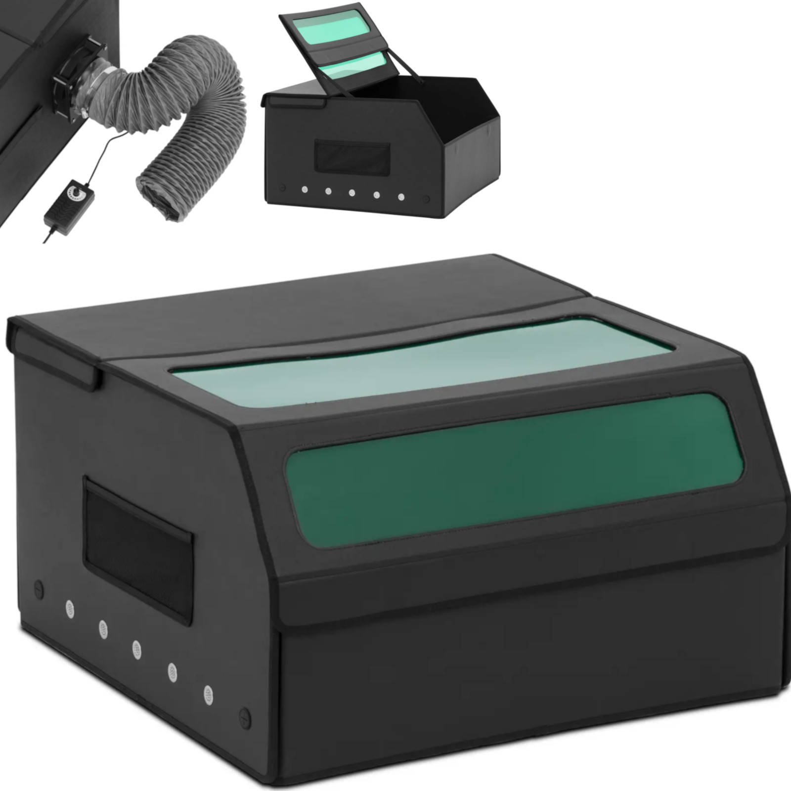 Obudowa marki Steinberg Systems pozwala chronić maszynę do grawerowania przed nadmiernym dymem i szkodliwym wpływem otoczenia. Dzięki niej grawerowanie będzie przebiegało dużo sprawniej, a urządzenie zawsze osiągnie najlepsze rezultaty. Jednocześnie osłona pozwala wygodnie kontrolować postęp pracy bez narażania oczu. Obudowa grawerki posiada dwa okienka z PVC, które zmniejszą wpływ promieniowania lasera na otoczenie. Są one na tyle przezroczyste, że wyraźnie widać wnętrze. Ścięta konstrukcja ułatwia oglądanie grawerki z góry i z boku, dzięki czemu można kontrolować postęp pracy maszyny. Obudowa wykonana została z wytrzymałej, ognioodpornej mieszanki płyty komórkowej i tkaniny oxford, której zewnętrzne ściany tworzą zamknięte wnętrze. Osłona ochronna grawerki ma system odsysania dymu, który wydziela się podczas pracy maszyny. Wentylator i wąż o długości 1,9 m usuną cząsteczki kurzu i dym z wnętrza w kontrolowany sposób. Poprawia to widoczność wewnątrz obudowy oraz ochroni przed szkodliwymi oparami. Składana konstrukcja osłony ułatwia transport i przechowywanie. Wymiary odpowiadają grawerce laserowej SBS-LEM-200X (kod producenta: 10031290). Można także użyć obudowy z mniejszymi modelami.