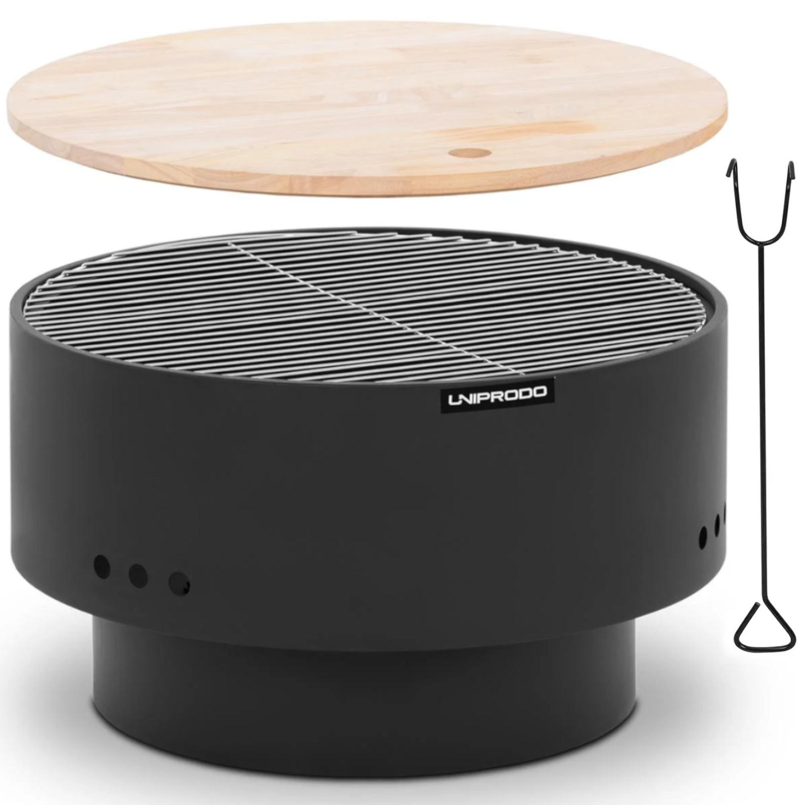 Palenisko ogrodowe marki Uniprodo to idealny dodatek do ogrodu lub patio. Zapewnia ciepło, relaks i przyjazną atmosferę do spotkań towarzyskich na świeżym powietrzu. Dzięki dołączonemu rusztowi można grillować kiełbaski lub pianki i cieszyć się relaksującymi wieczorami przy pysznych przekąskach. Ponadto, dzięki pokrywie wykonanej z włókna drzewnego o średniej gęstości, misę łatwo jest przekształcić w elegancki stolik do przechowywania. Palenisko ogrodowe pozwala rozpalić ogień w bezpieczny i czysty sposób. Specjalna konstrukcja zapewnia, że płomienie mają dużo tlenu do spalania. Miska paleniska wykonana została z trwałych materiałów, jest nie tylko wyjątkowo niewrażliwa na wysokie temperatury, ale także bardzo odporna na rdzę i inne czynniki zewnętrzne. Ogród z paleniskiem gwarantuje ciepłą, przytulną atmosferę na długie lata.