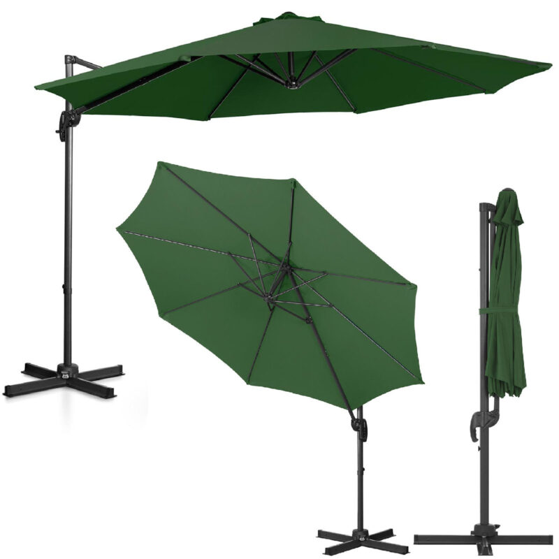 Parasol ogrodowy marki Uniprodo sprawdzi się w każdym ogrodzie, na tarasie czy działce i wszędzie tam, gdzie potrzebne jest zapewnienie cienia w słoneczny dzień. Posiada dużą czaszę o średnicy 300 cm. Współczynnik ochrony UPF 50+ zatrzymuje około 98% wszystkich promieni UV. Parasol wykonany został z solidnego poliestru o gęstości 180 g/m2, ma wysoką wytrzymałość na rozciąganie, rozdarcie, jest trwały, odporny na promieniowanie UV i łatwy w pielęgnacji. Ręczna korba pozwala szybko i bez wysiłku otworzyć i zamknąć parasol oraz go pochylić. Materiał i konstrukcja odznaczają się długą żywotnością. Słupek o średnicy 45 x 64 mm wykonany został z odpornego na korozję aluminium. 8 żeber wykonano z wytrzymałej stali. System ochrony przed wiatrem zapewnia stabilność i lepszą cyrkulację powietrza nawet podczas niesprzyjającej pogody. Dzięki wspornikowi parasol oszczędza miejsce, można ustawić go przy ścianie lub obok stołów. Stalowa podstawa posiada otwory, którymi za pomocą śrub można przymocować parasol w dowolnym miejscu. Dla uzyskania jeszcze lepszej stabilności można dokupić specjalną podstawę, która dodatkowo przytrzyma całość na miejscu.