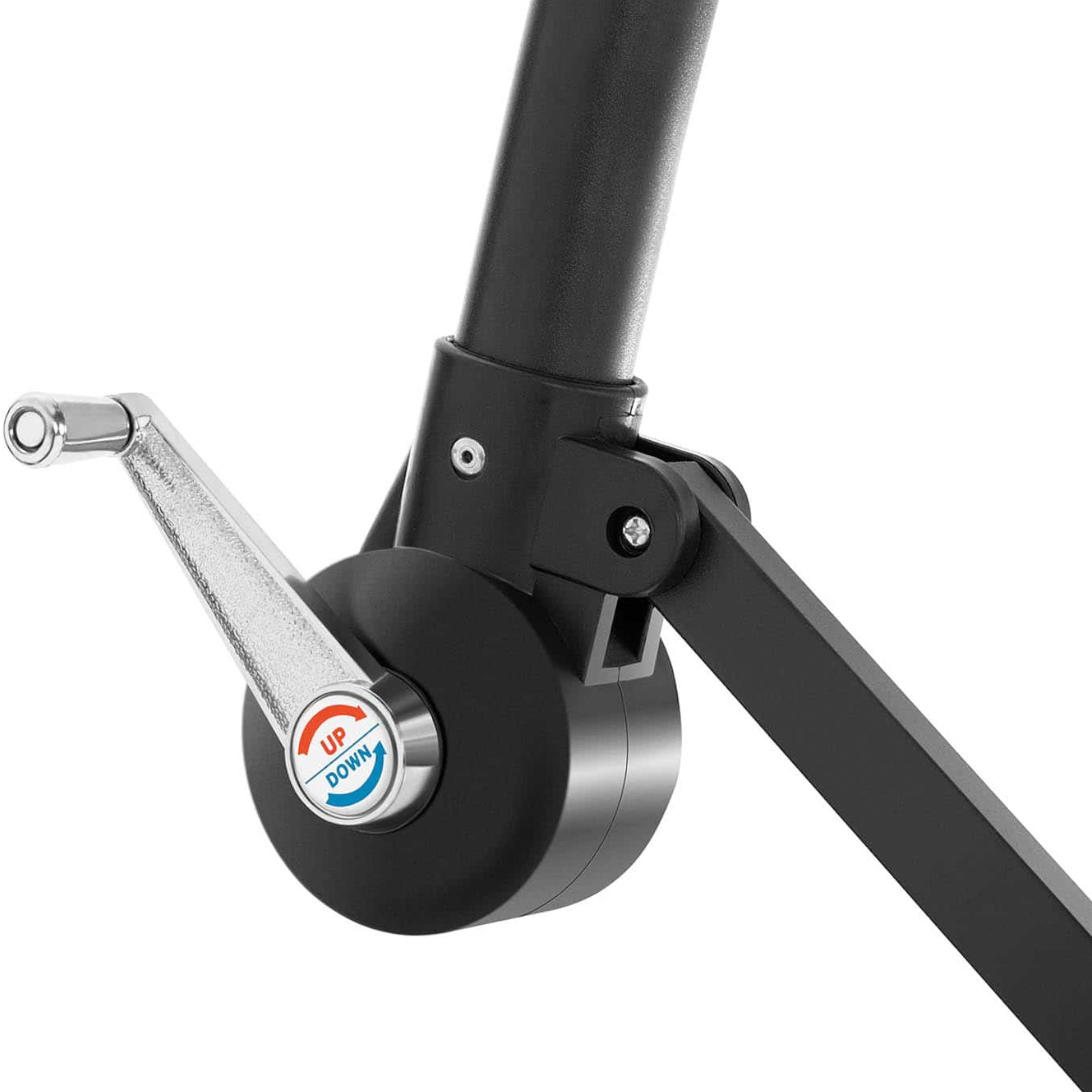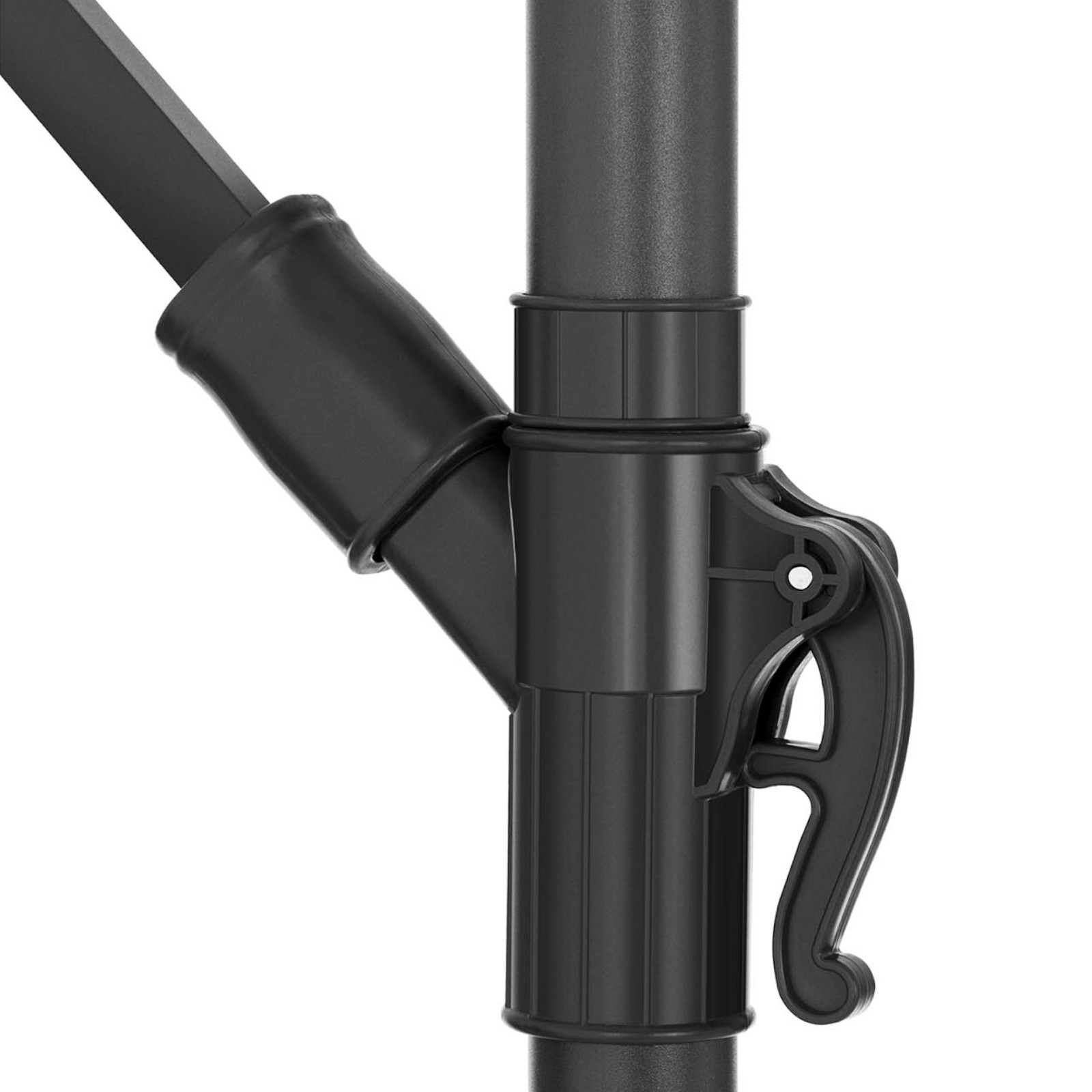 Parasol marki Uniprodo sprawdzi się w letnie dni do ochrony przed promieniami słonecznymi i ciepłem. Czasza ma wymiary 250 x 250 cm. Za sprawą współczynnika ochrony UPF 50+ zatrzymuje około 98% wszystkich promieni UV. Poszycie parasola wykonane zostało z solidnego poliestru o gęstości 180 g/m2. Materiał ten ma wysoką wytrzymałość na rozciąganie i rozdarcie, jest trwały, odporny na promieniowanie UV i łatwy w pielęgnacji. Ręczna korba pozwala szybko i bez wysiłki otworzyć oraz zamknąć parasol oraz go pochylić. Słupek parasola o średnicy 48 mm i żebra (8 szt.) wykonane zostały ze stali. System ochrony przed wiatrem zapewnia stabilność nawet podczas niesprzyjającej pogody. Parasol na wsporniku oszczędza miejsce, może być ustawiony bezpośrednio przy ścianie czy obok stołów. Podstawa posiada otwory do zamocowania za pomocą śrub w dowolnym miejscu. Dla większej stabilności można dokupić specjalną podstawę do parasola.