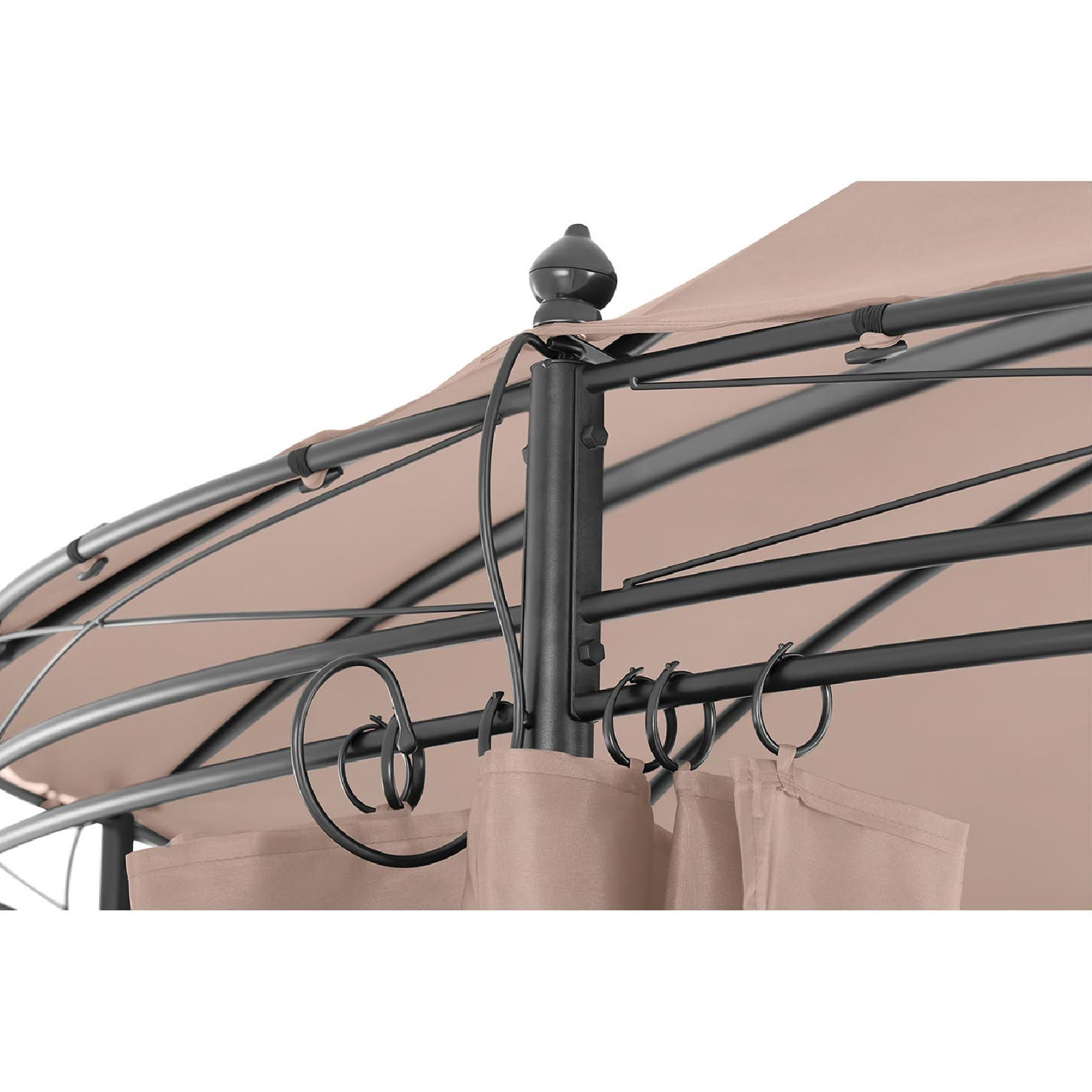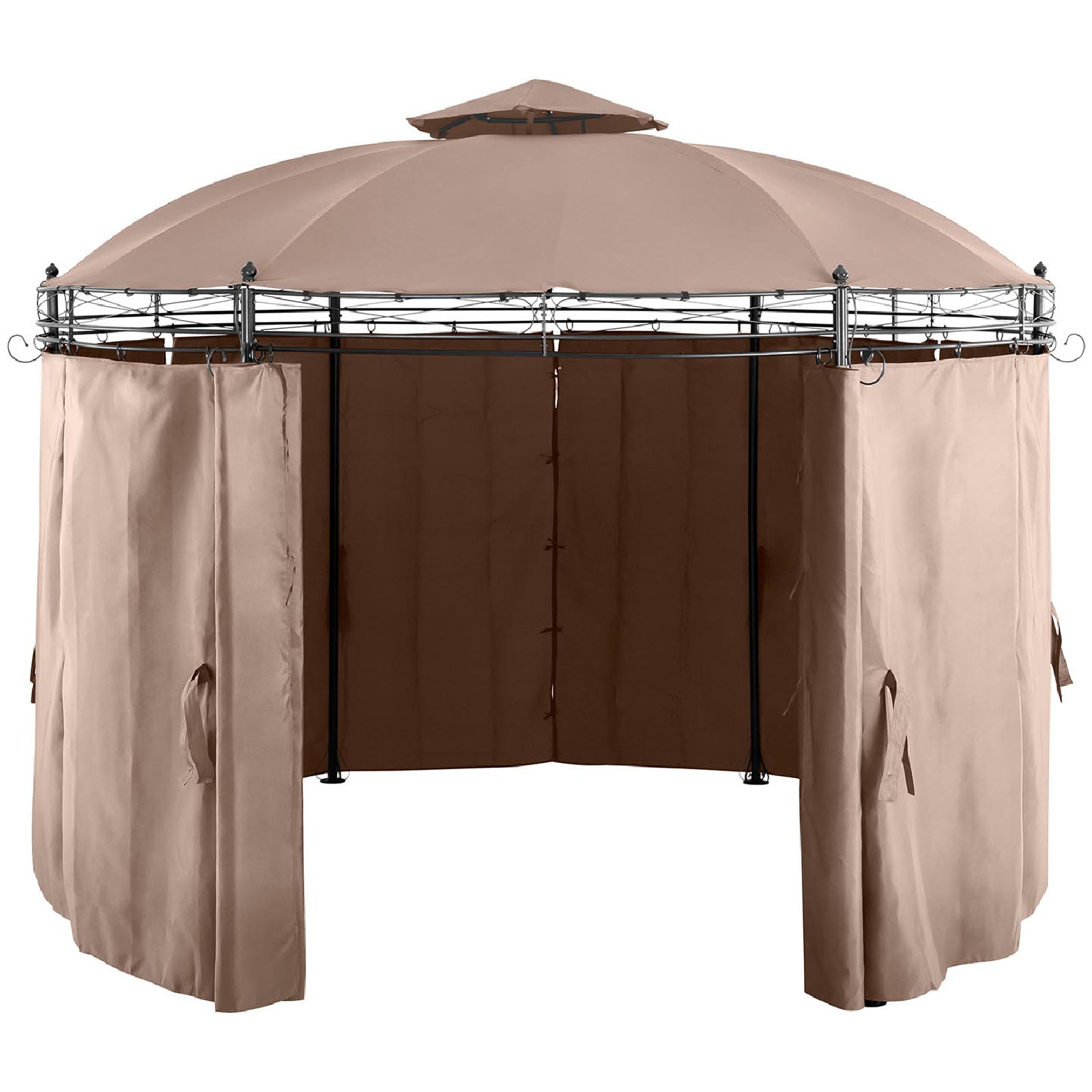 Okrągły namiot ma średnicę 3,5 m dzięki czemu pomieści wiele osób. Zadaszenie oraz poszycia boczne wykonane zostały z poliestru o gramaturze 180g/m2, są odporne na promieniowanie UV, chronią przed słońcem w upalnym dzień i przed deszczem w niepogodę. Ściany są składane. Konstrukcję wykonano ze stali zabezpieczonej farbą proszkową, gwarantującą odporność na uszkodzenia, rdzę czy łuszczenie. Szczegółowa instrukcja pozwala na szybkie złożenie namiotu. Altana jest wolnostojąca, można ją w każdej chwili przestawić w dowolne miejsce.