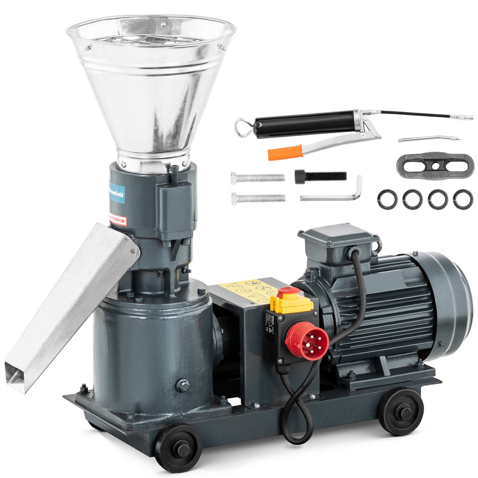 Profesjonalna peleciarka przemysłowa marki Wiesenfield służy do produkcji pelletu, paszy dla zwierząt i granulatu z różnych materiałów organicznych. Granulator daje możliwość wykorzystania drewnianych trocin, słomy, łupin orzechów, łusek ryżowych czy papieru. Są one umieszczane w specjalnej matrycy z otworami o średnicy 6 mm, gdzie poddaje się je działaniu wysokiego ciśnienia i temperatury (60-80°C). Część materiałów wymaga użycia specjalnych spoiw. Peleciarka jest w stanie wytworzyć 60-100 kg paszy oraz 40-60 kg pelletu z trocin w ciągu godziny. Nad ochroną użytkownika czuwa specjalny hamulec bezpieczeństwa. 4 kółka zapewniają mobilność maszyny oraz ułatwiają transportowanie.
