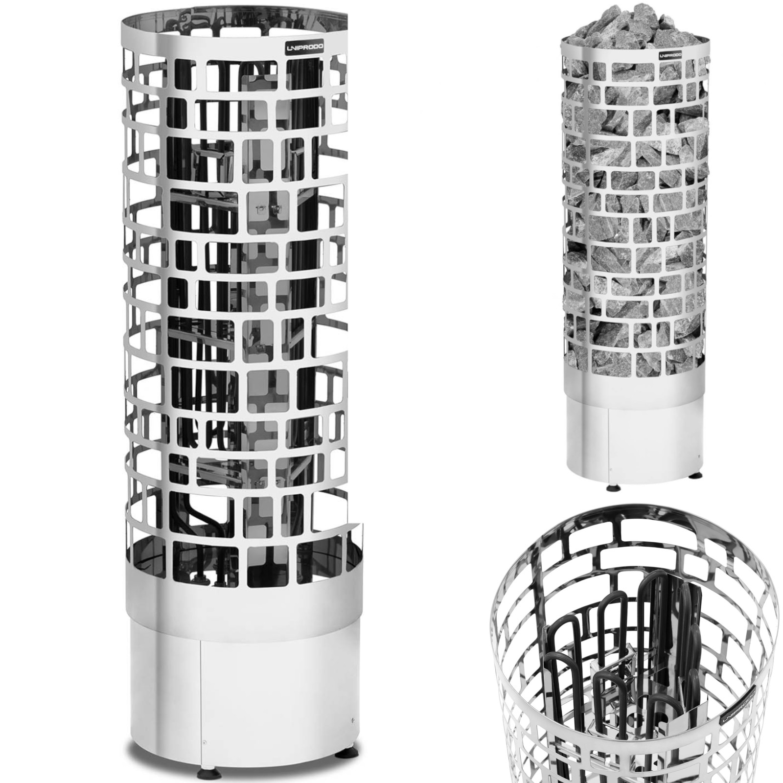 Piec do sauny marki Uniprodo sprawdzi się w domach, hotelach, ośrodkach wypoczynkowych czy SPA. Moc urządzenia wynosi 6 kW, co pozwala na szybkie osiągnięcie temperatury do 110°C. Piec będzie idealny dla pomieszczeń o objętości 5-9 m3. Konstrukcję wykonano ze stali nierdzewnej, co gwarantuje dużą wytrzymałość na uszkodzenia oraz na korozję. Poziom ochrony IPX4 oznacza, że sprzęt odporny jest na działanie wody. Aby zwiększyć wilgotność w saunie bez obawy można polać wodą rozgrzane kamienie. 4 gumowe nóżki zapewniają stabilność, nie ślizgają się i chronią podłogę przed zarysowaniem. Niewielka waga sprzętu pozwala na wygodne przenoszenie oraz manewrowanie. Sprzęt wymaga napięcia 400 V, a zakres dostawy nie obejmuje przewodu zasilającego i wtyczki.