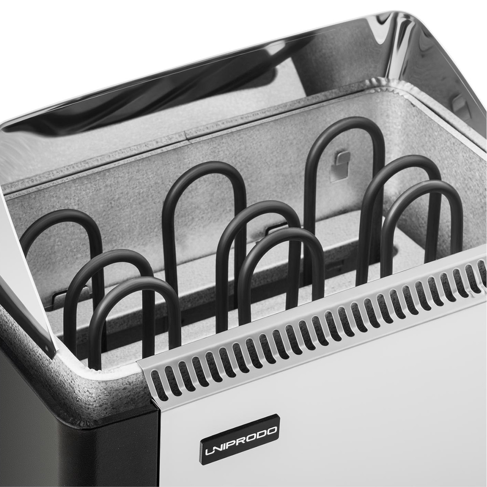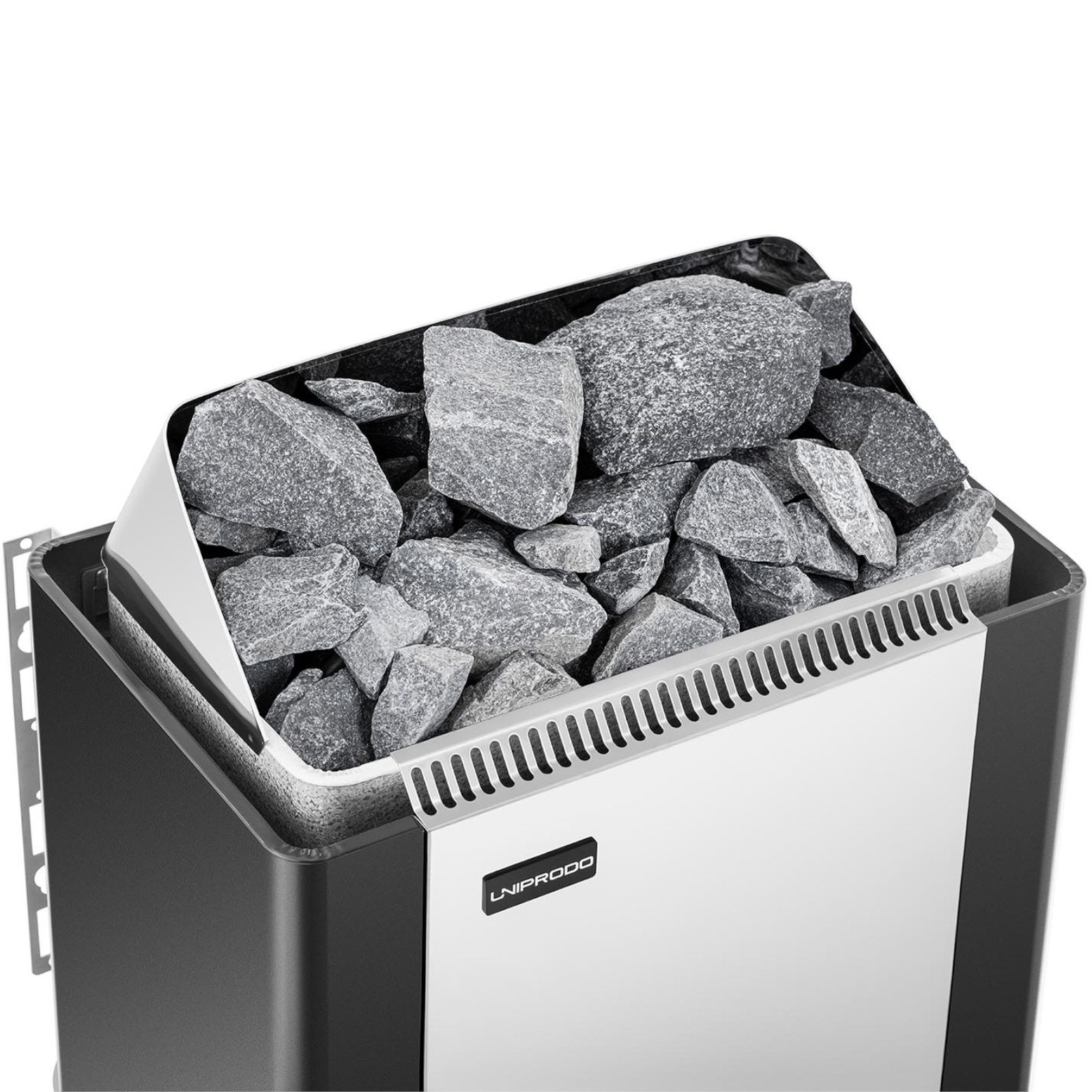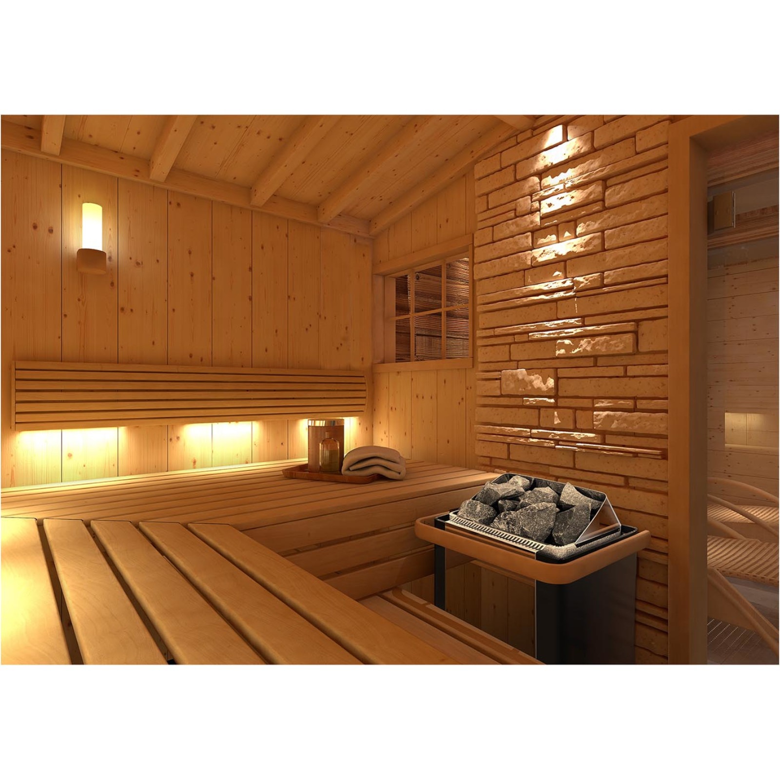 Elektryczny piec do sauny suchej  z oddzielnym panelem sterowania jest urządzeniem przeznaczonym zarówno do domowego, jak i profesjonalnego użytku w ośrodkach odnowy biologicznej czy na basenach. Piec o mocy 4,5 kW pasuje idealnie do małych i średnich pomieszczeń (3-6 m³), w szybkim czasie osiąga temperaturę nawet do 110°C. Urządzenie wykonane jest ze stali nierdzewnej, aluminium i cynku, zapewnia to odporność na korozję, wytrzymałość i trwałość. Dzięki zastosowaniu klasy ochrony wodoodporności na poziomie IPX4, korzystanie z pieca jest całkowicie bezpieczne. Instalacja urządzenia jest bardzo prosta, można je montować również na ścianie.