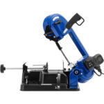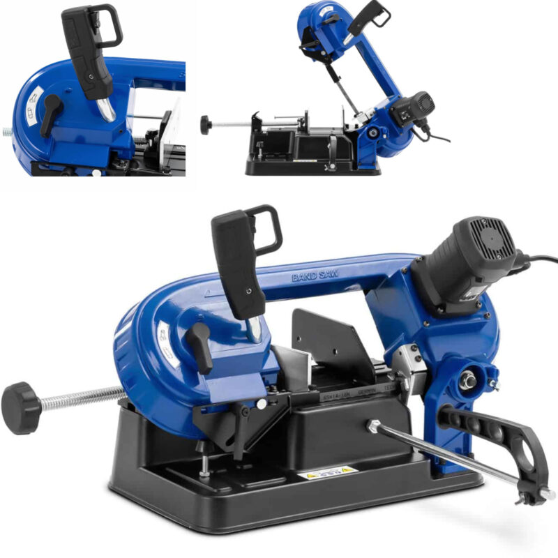 Piła taśmowa marki MSW idealnie nadaje się do cięcia na wymiar elementów plastikowych, metalowych z tworzywa sztucznego, PVC, stali aluminium, oraz przewody elektryczne. Maszyna wykorzystuje moc 680 W, rozpędzając ostrze do prędkości 1,0 – 1,7 m/s. Za pomocą pokrętła można dostosować szybkość brzeszczotu do obrabianego materiału. Zacisk przytrzymuje obrabiane elementy, zapewniając bezpieczeństwo podczas cięcia. Taśma o długości 1332 mm i szerokości 13 mm tnie z grubością 0,65 mm. Przy maksymalnej wysokości 115 mm i szerokości 150 mm do cięcia dużych kawałków, piłę taśmową do metalu ustawisz pod kątem 90°, natomiast piłowanie pod kątem 45° dopuszczalne przy elementach o wymiarach 50 x 50 mm. Piła jest optymalnie ustawiona na stabilnym metalowym blacie roboczym do obróbki elementów kwadratowych i okrągłych. Do wymiany brzeszczotu służy dźwignia, za pomocą której szybko poluzuje się i zaciśnie taśmę tnącą.