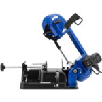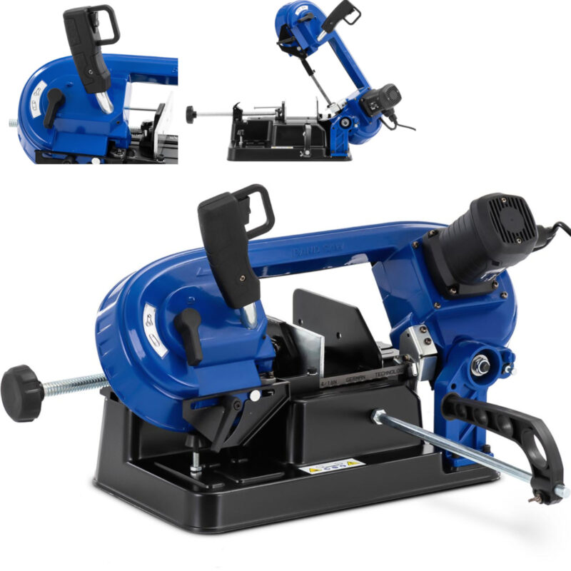 Piła taśmowa marki MSW idealnie nadaje się do cięcia na wymiar elementów plastikowych, metalowych z tworzywa sztucznego, PVC, stali aluminium, oraz przewody elektryczne. Maszyna wykorzystuje moc 680 W, rozpędzając ostrze do prędkości 1,0 – 1,7 m/s. Za pomocą pokrętła można dostosować szybkość brzeszczotu do obrabianego materiału. Zacisk przytrzymuje obrabiane elementy, zapewniając bezpieczeństwo podczas cięcia. Taśma o długości 1332 mm i szerokości 13 mm tnie z grubością 0,65 mm. Przy maksymalnej wysokości 125 mm i szerokości 150 mm do cięcia dużych kawałków, piłę taśmową do metalu ustawisz pod kątem 90°, natomiast piłowanie pod kątem 45° dopuszczalne przy elementach o wymiarach 50 x 80 mm. Piła jest optymalnie ustawiona na stabilnym metalowym blacie roboczym do obróbki elementów kwadratowych i okrągłych. Do wymiany brzeszczotu służy dźwignia, za pomocą której szybko poluzuje się i zaciśnie taśmę tnącą.