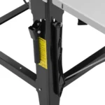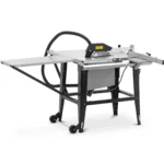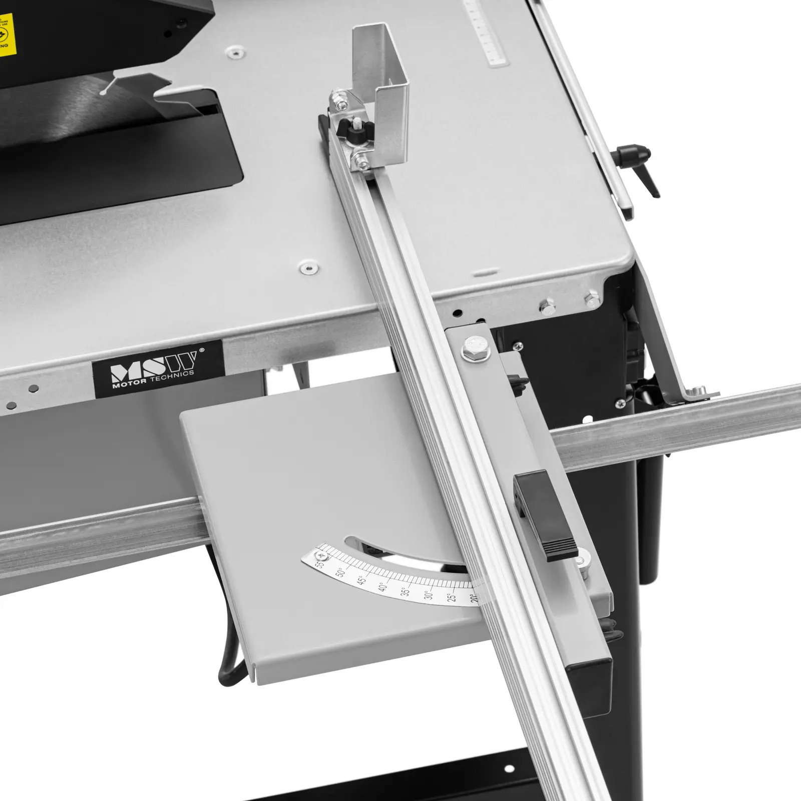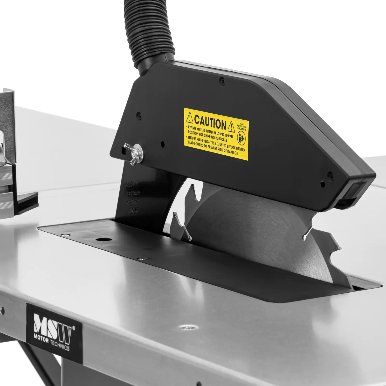 Piła stołowa marki MSW pozwala samodzielnie ciąć duże kawałki drewna. Maszyna imponuje dużą prędkością, z jaką tarcza wbija się w drewno. Dzięki przedłużce jest dość miejsca na stole roboczym, aby bezpiecznie prowadzić deski. Moc 2000 W i prędkość obrotowa 2800 obr./min bez wysiłku przetną nawet duże deski o grubości do 83 mm. Głębokość cięcia tarczy 315 mm w pilarce ustawiana jest za pomocą korby. Aby piłować pod kątem należy tarczę piły przechylić precyzyjnie do kąta 45°. Wózek przesuwny pozwala poprowadzić drewno równolegle i prosto przez ostrze. Wysokość robocza 85 cm pozwala pracować przez cały czas komfortowo. Solidna konstrukcja oraz ocynkowany blat sprawiają, że stół wytrzymuje duże obciążenia. Osłona ochronna tarczy jest wyposażona w wąż ssący do podłączenia do odkurzacza przemysłowego. W ten sposób zabezpiecza oraz chroni stanowisko pracy przed pyłem i wiórami. Można też rozszerzyć powierzchnię roboczą o 800 x 400 mm aby ułożyć nawet duże deski. Dwa kółka pozwalają zmienić położenie maszyny w dowolnym momencie.