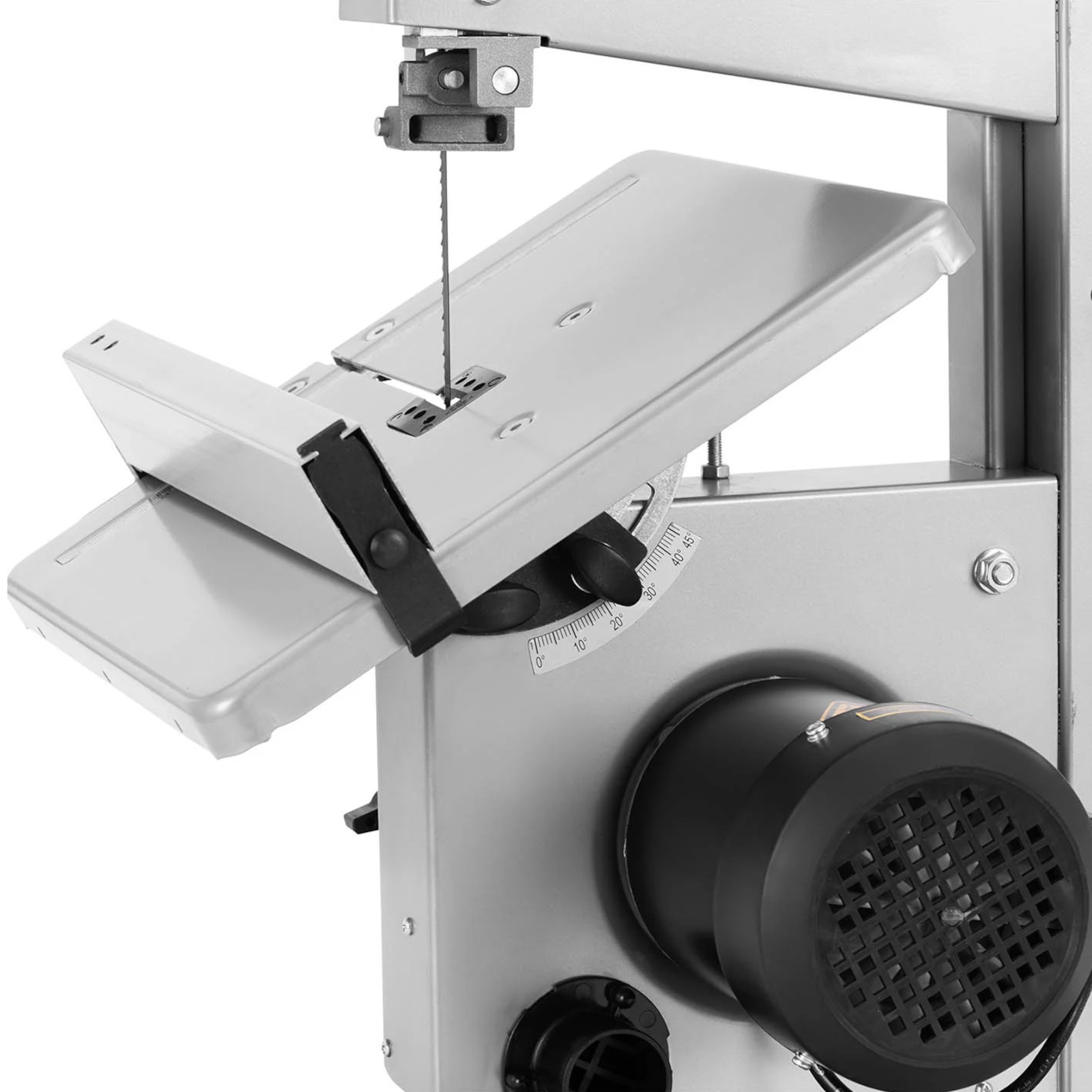 • – Stół roboczy przechylany do 45° za pomocą skali,