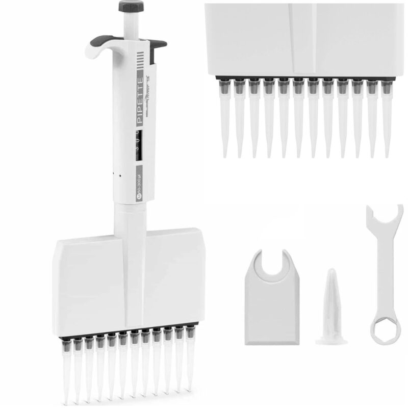 Pipeta wielokanałowa marki Steinberg System idealnie nadaje się do przenoszenia płynów w laboratoriach, szkołach lub w domu. Pipeta 12-kanałowa wyposażona jest w precyzyjną sprężynę, dzięki czemu wystarczy nacisnąć przycisk, aby nabrać i odmierzyć ciecz o danej objętości, a pokrętło równie płynnie wraca do pozycji wyjściowej. Urządzenie można obsługiwać jedną ręką, a ilość płynu kontrolowana jest za pomocą obracanego tłoku. Na uchwycie znajduje się czytelny, 3 – cyfrowy wyświetlacz pojemności. Głowica wielokanałowej pipety obraca się o 360°, ułatwiając pobieranie próbek. Urządzenie pozwala na sprawną wymianę zużytych końcówek. Całość została wykonana z tworzywa sztucznego, które jest wytrzymałe i wyjątkowo lekkie.