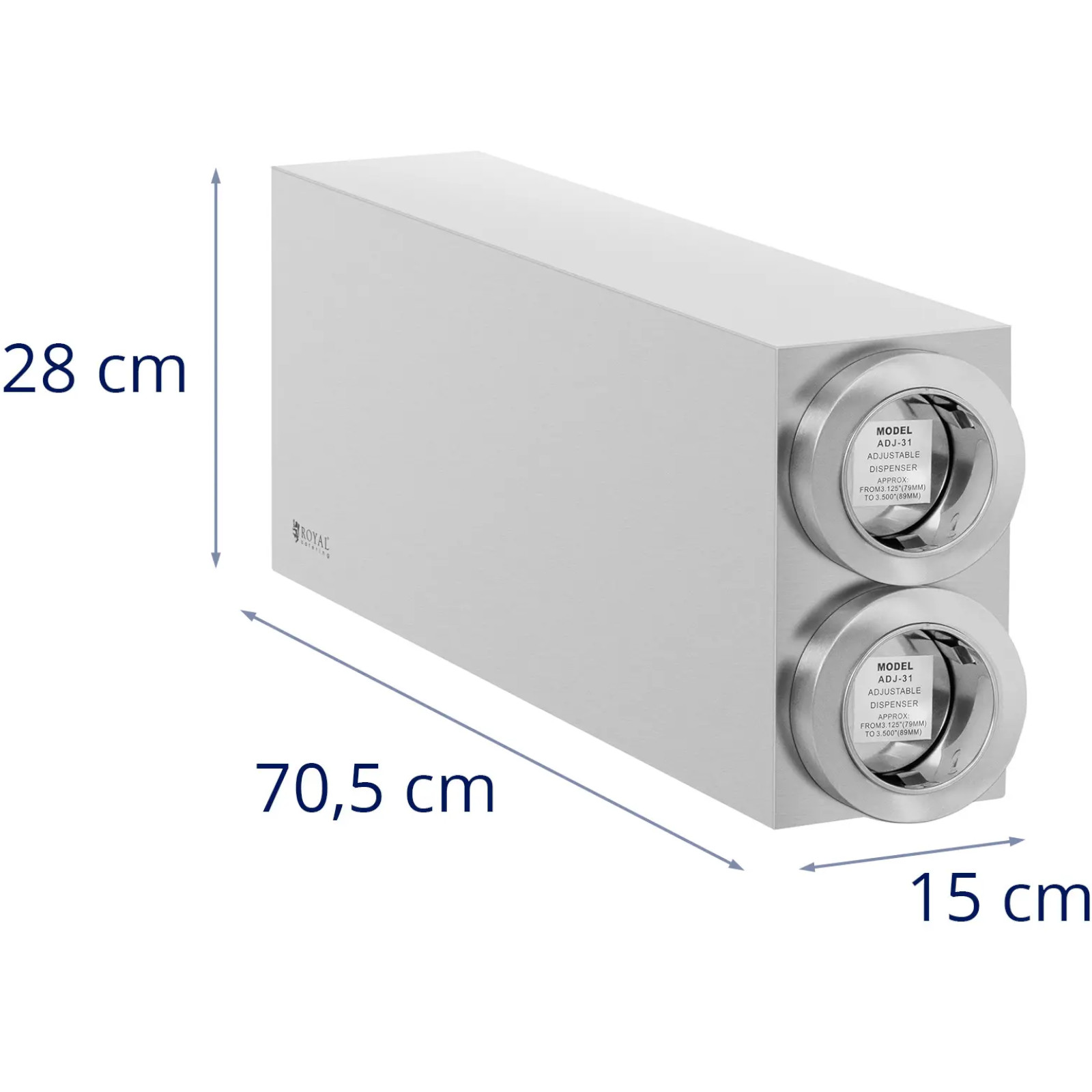 Podajnik dystrybutor do kubków jednorazowych z 2 dozownikami STAL 81 - 89 mm