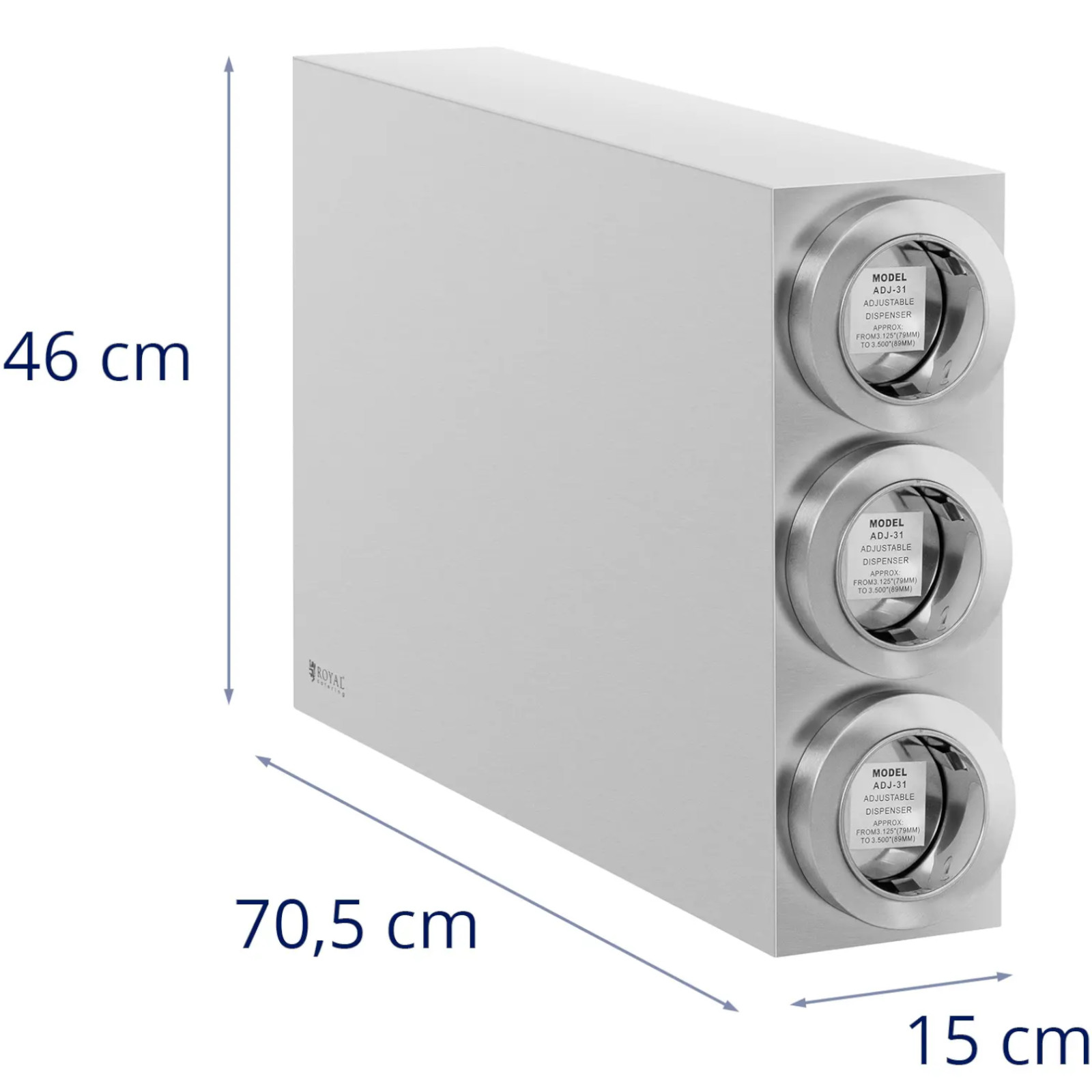 Podajnik do kubków jednorazowych marki Royal Catering z trzema oddzielnymi otworami jest praktyczny i wszechstronny. – Idealnie nadaje się do dużej liczby lub różnych rodzajów kubków jednorazowych. Dzięki przemyślanej konstrukcji bez problemu pomieści jednorazowe kubki o średnicach 81 – 89 cm. Praktyczna podwójna funkcja nie tylko ułatwia obsługę, ale także zapewnia sprawną organizację przy stanowiskach do kawy lub herbaty. Wyjmowanie i napełnianie kubków jest szybkie i wygodne. Dozownik wykonany został ze stali nierdzewnej, co zapewnia nie tylko długą żywotność, ale także doskonały i atrakcyjny wygląd przez długi czas. Podajnik wpasuje się w różne otoczenie i nada stacjom z napojami ekskluzywnego i nowoczesnego charakteru. Zapewnia również porządek i wydajność w miejscach, gdzie nie ma dużo przestrzeni. Dzięki pionowej konstrukcji model wymaga niewielkiej powierzchni, co pozwala na optymalne wykorzystanie stanowiska z kawą.
