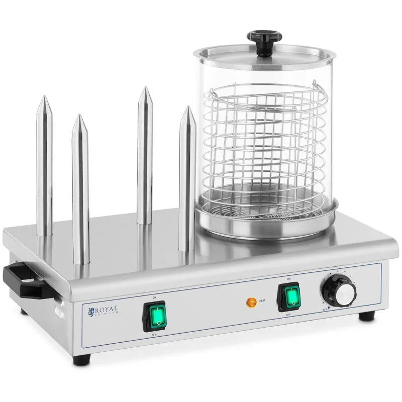 Podgrzewacz do hot dogów 4 szpikulce na bułki pojemnik na 30 kiełbasek 650 W
