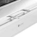 Podgrzewacz do potraw marki Royal Catering sprawdzi się w hotelowych bufetach oraz na imprezach z cateringiem. Wykonany został ze stali nierdzewnej, solidnej i nie wchodzącej w reakcje z żywnością. Posiada dużą pojemność 8,5 l, dzięki zastosowaniu pojemnika GN 1/1 o wymiarach 530 x 325 mm. Żaroodporna rączka zapobiega poparzeniu. Pokrywa jest odchylana, co ułatwia nakładanie żywności. Okienko z hartowanego szkła umożliwia podgląd zawartości bez konieczności otwierania. Dołączone pojemniki na paliwo posiada pokrywę ułatwiającą gaszenie. Pojemniki z pastą instalowane są bezpośrednio pod dnem zbiornika wody o wielkości 565 x 365 x 95 mm. Kąpiel wodna podgrzewa potrawy i zapobiega ich przypaleniu.