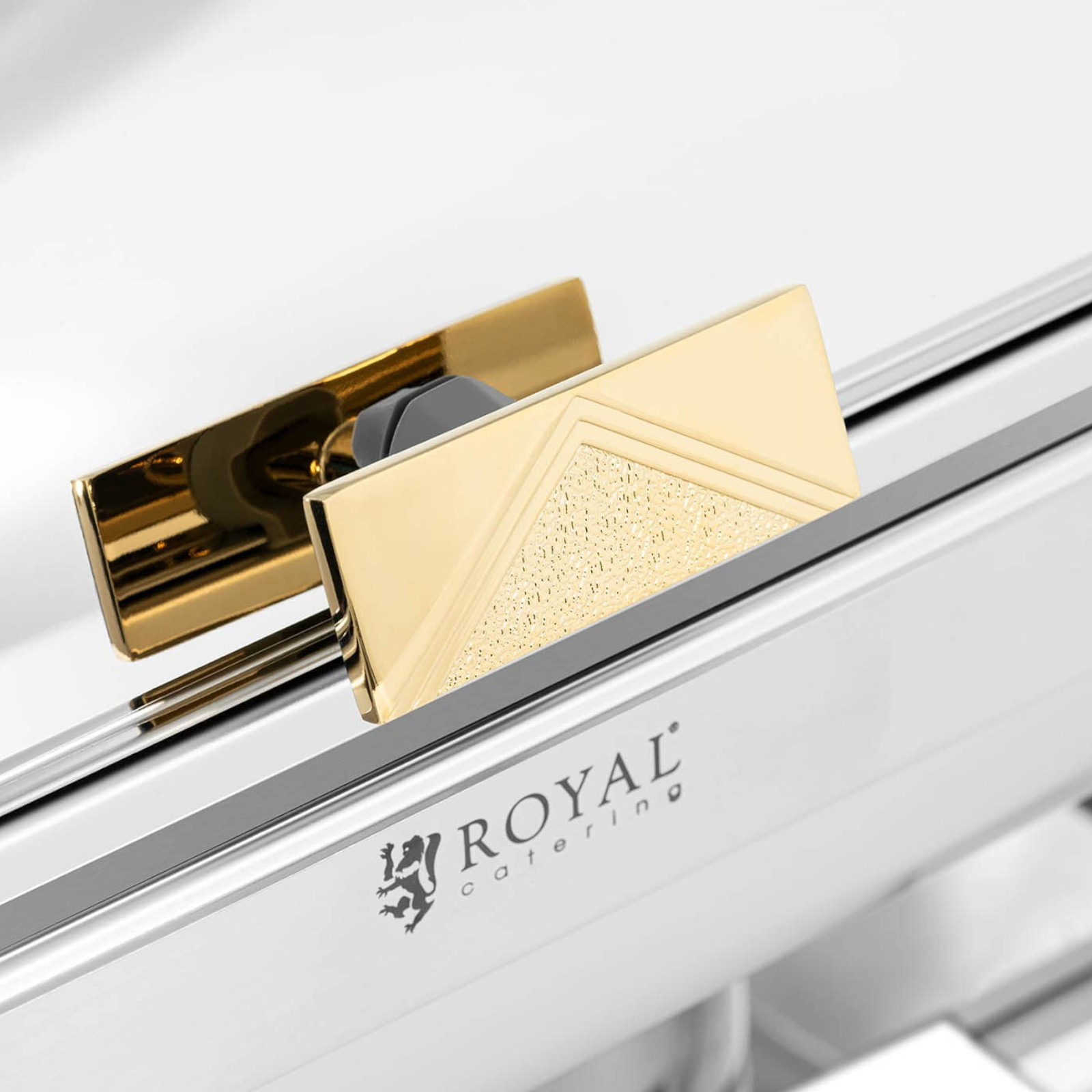 Podgrzewacz do potraw marki Royal Catering sprawdzi się do utrzymywania w cieple potraw. Jego pojemność wynosi 9 l. Podgrzewacz wyposażono w wyjmowany pojemnik GN 1/1, który ułatwia jego napełnianie. Przedmiot wykonany został ze stali nierdzewnej, odpornej na zarysowania, higienicznej, spełniającej standardy gastronomiczne. Posiada także uchwyty do przenoszenia. Bemar zasilany jest za pomocą pojemników napełnianych pastą. Palniki posiadają pokrywki ułatwiające zgaszenia płomienia i zapewniają bezpieczeństwo podczas użytkowania. Pojemnik z pastą umieszcza się pod dnem zbiornika na wodę o wymiarach 505 x 303 x 100 mm. Selektywne i oszczędne podgrzewanie cienkościennego pojemnika gwarantuje optymalną dystrybucję ciepła. Dzięki temu potrawy są gotowe spożycia przez wiele godzin. Kąpiel wodna sprawia, ze jedzenie nie przypala się i nie rozgotowuje a także utrzymuje ciepło przez pewien czas nawet po zgaśnięciu płomienia.