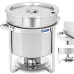 Podgrzewacz na pastę marki Royal Catering pozwala w elegancki sposób eksponować i utrzymywać w cieple dania dzięki kąpieli wodnej. Naczynie posiada pojemność 10,5 l. Wyjmowane pojemniki ułatwiają napełnianie oraz mycie. Miska na wodę ma pojemność 11 l, daje możliwość grzania nawet kiedy pasta się wypali. Pokrywa pozwala na dłużej zachować potrawy świeże i chroni przed czynnikami zewnętrznymi. Podgrzewacz wykonany został ze stali nierdzewnej, jest odporny na korozję, uszkodzenia mechaniczne oraz na plamy z wody a także neutralny biologicznie. Gładką powierzchnię łatwo wyczyścić.