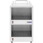 Podgrzewacz do filiżanek marki Royal Catering zapewnia naczynia w optymalnej temperaturze, ułatwiając serwowanie gorących napojów. Urządzenie idealnie nadaje się do użytku w gastronomii do podgrzewania i utrzymywania w cieple filiżanek, kubków ceramicznych, a nawet talerzy. Twoi goście będą zachwyceni, gdy otrzymają ciepłe naczynia. Podgrzewacz sprawdzi się w restauracjach, barach, kawiarniach, na imprezach okolicznościowych czy w cateringu. Szafkowy podgrzewacz ma oddzielne termostaty do ogrzewania dwóch poziomów. Przy łącznej mocy 140 W urządzenie osiąga maksymalną temperaturę do 55°C, co zapewnia efektywność. Specjalne kanały powietrzne gwarantują równomierne rozprowadzenie ciepła. Trzy estetyczne wsporniki zapewniają bezpieczeństwo filiżankom umieszczonym na samej górze sprzętu. Urządzenie wykonano ze stali nierdzewnej, jest łatwe do utrzymania w czystości i doskonale prezentuje się w kuchniach. Oba wewnętrzne poziomy oferują miejsce na 36 filiżanek, łącznie pozwalają przechować 72 filiżanki.