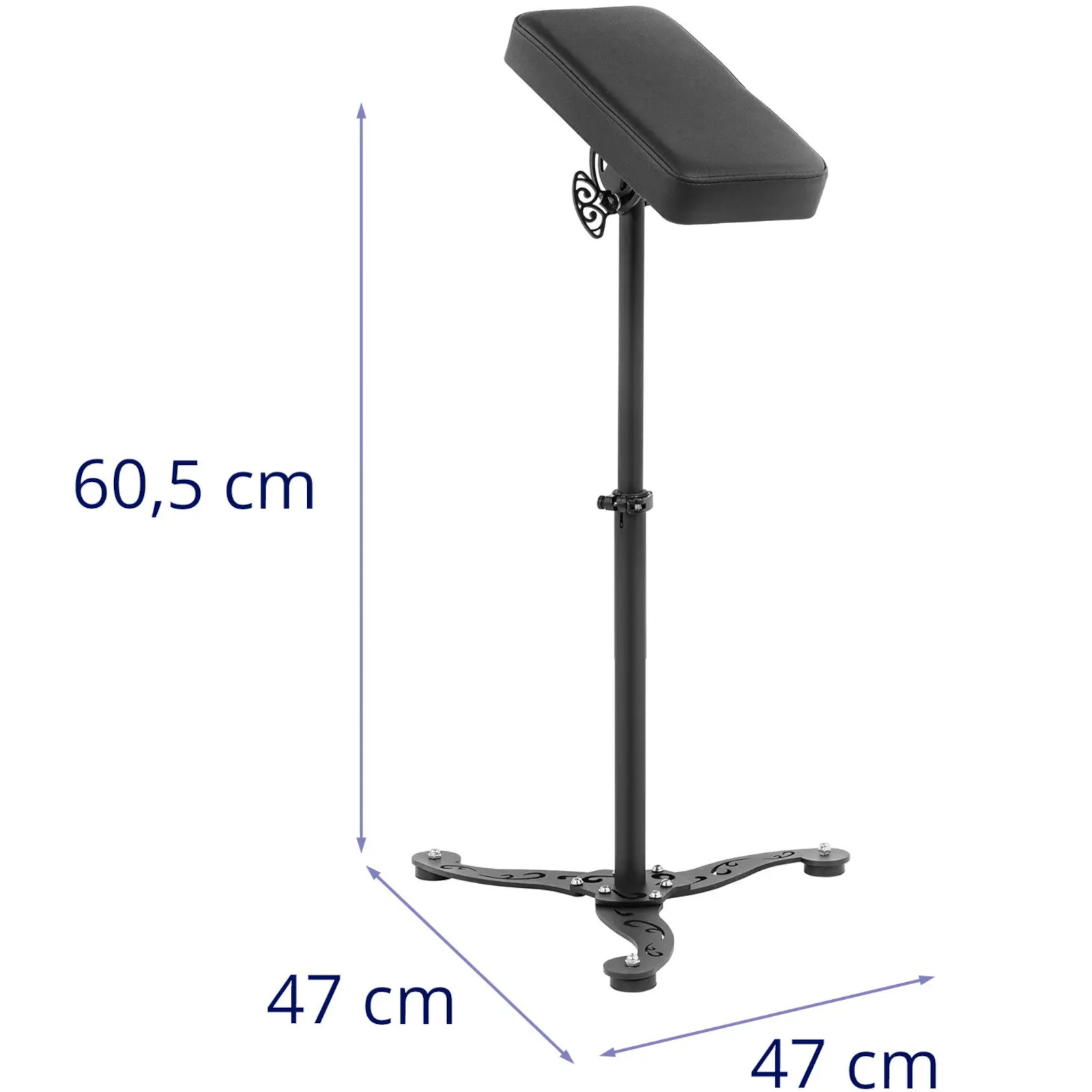 Podłokietnik do tatuażu marki Physa zapewnia komfort nawet przy długim zabiegu. Odchylana podpórka oferuje mnóstwo miejsca na znalezienie idealnej pozycji. Podłokietnik jest szczególnie lekki, łatwo go przenieść w wybrane miejsce. Sprawdzi się idealnie w dużych studiach tatuażu z kilkoma stanowiskami pracy lub na targach i wydarzeniach. Jego wysokość jest regulowana w zakresie od 61 do 99 cm. Można także przechylić poduszkę pod katem do 180°, co oznacza, że podczas tatuowania zawsze można ustawić ramię pod właściwym kątem i utrzymać wygodną postawę. Podłokietnik opiera się na stabilnej ramie z żelaza. Materiał jest trwały i zniesie częste użytkowanie bez żadnych problemów. Miękkie obicie wykonane jest z pianki, a tapicerkę z tworzywa szybko i łatwo wyczyścić.
