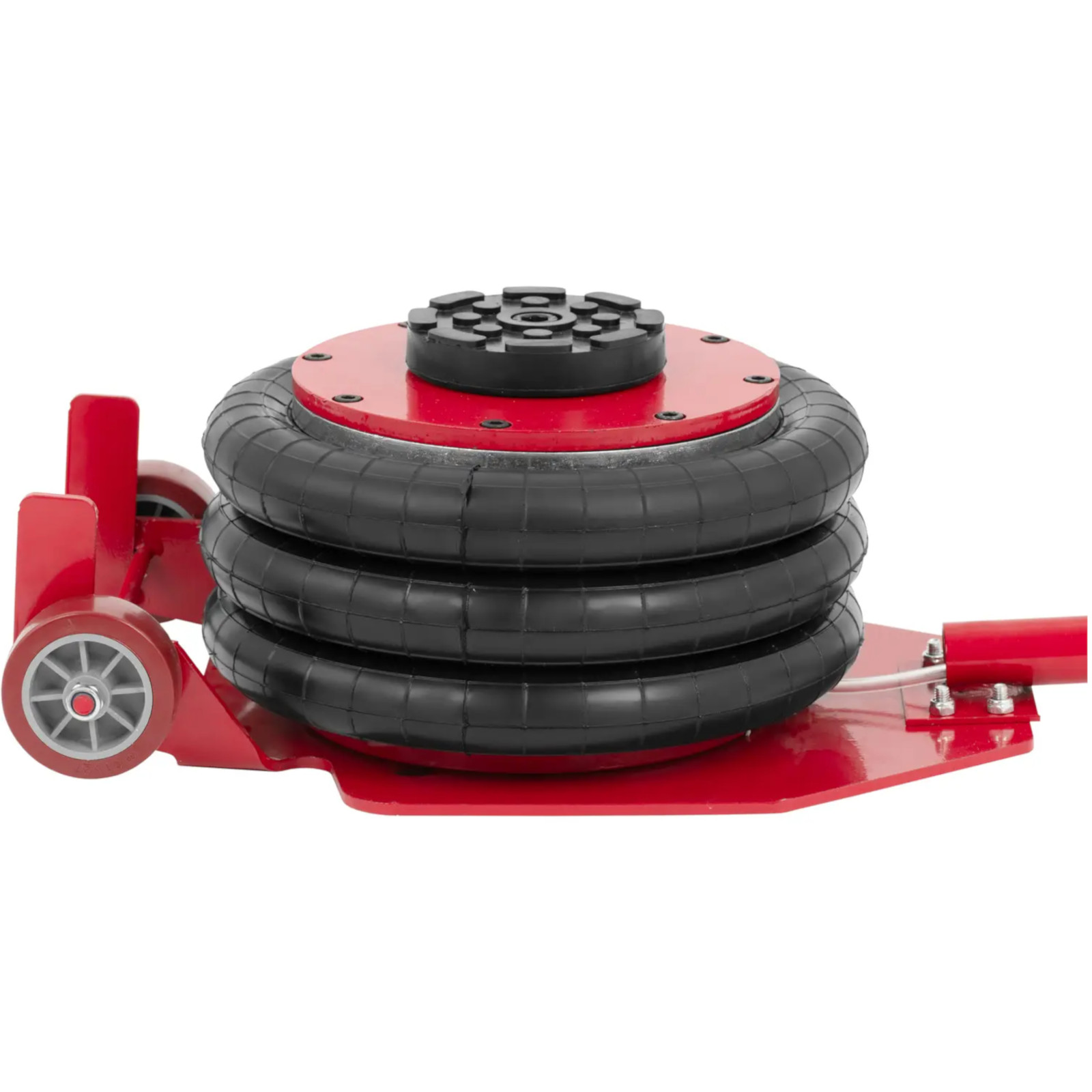 - – Podnośnik pneumatyczny wykorzystuje sprężone powietrze o ciśnieniu od 5 do 10 barów z kompresora, aby za pomocą poduszek powietrznych łatwo i bezpośrednio unieść pojazdy o masie do 3000 kg,