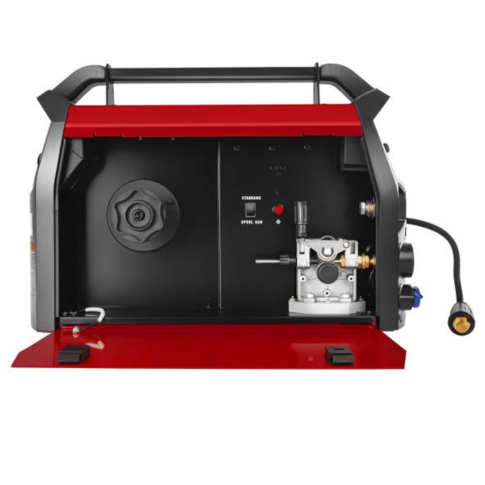 - – Mobilność – wygodna rączka ułatwia przenoszenie spawarki,