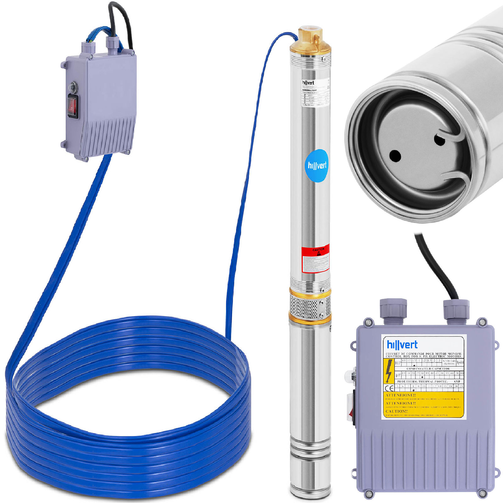 Pompa głębinowa marki Hillvert sprawdzi się do pompowania czystej wody ze studni głębinowych czy zbiorników, przy podlewaniu roślin, napełnianiu oczek wodnych, a także jako zaopatrzenie w wodę gospodarstw domowych, instalacji wodociągowych lub nawadniających.