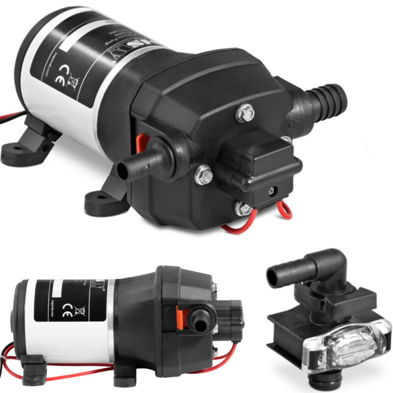 Pompa ciśnieniowa marki MSW sprawdzi się do pompowania, rozpylania, filtrowania płynów. Za sprawą kompaktowości idealnie nadaje się do jachtów, kamperów, opryskiwaczy, urządzeń czyszczących oraz ciśnieniowych systemów wodnych i nawilżaczy powietrza. Pompa osiąga przepływ 12,5 l/min. Średnica wylotu wynosi 19 mm. Urządzenie pompuje wodę o maksymalnej temperaturze 60°C. Pompę wody ciśnieniową obsługuje presostat. Jeśli ciśnienie w zbiorniku spadnie do określonej wartości, pompa włączy się automatycznie. Urządzenie przystosowano do pracy ciągłej. Zintegrowane automatycznie wyłączanie niezawodnie chroni przed uszkodzeniami spowodowanymi przegrzaniem. Urządzenie wyłącza się gdy osiągnie temperaturę 120°C. Średnica przewodu wynosi 16 AWG (1,3mm2).