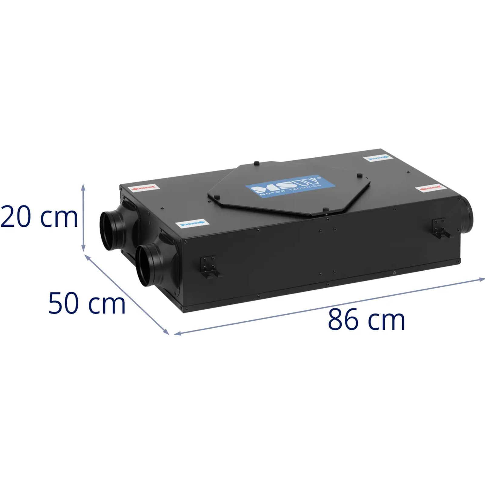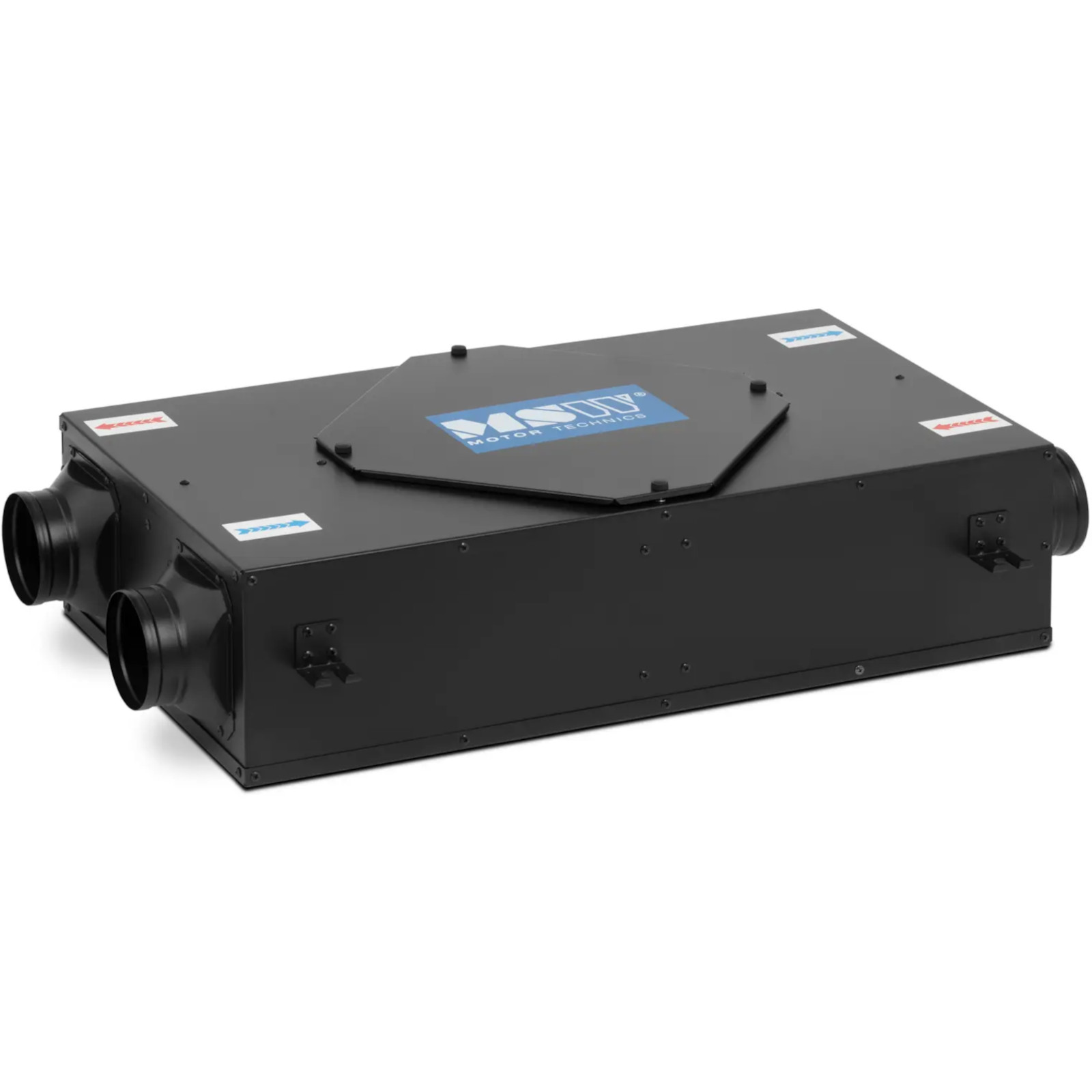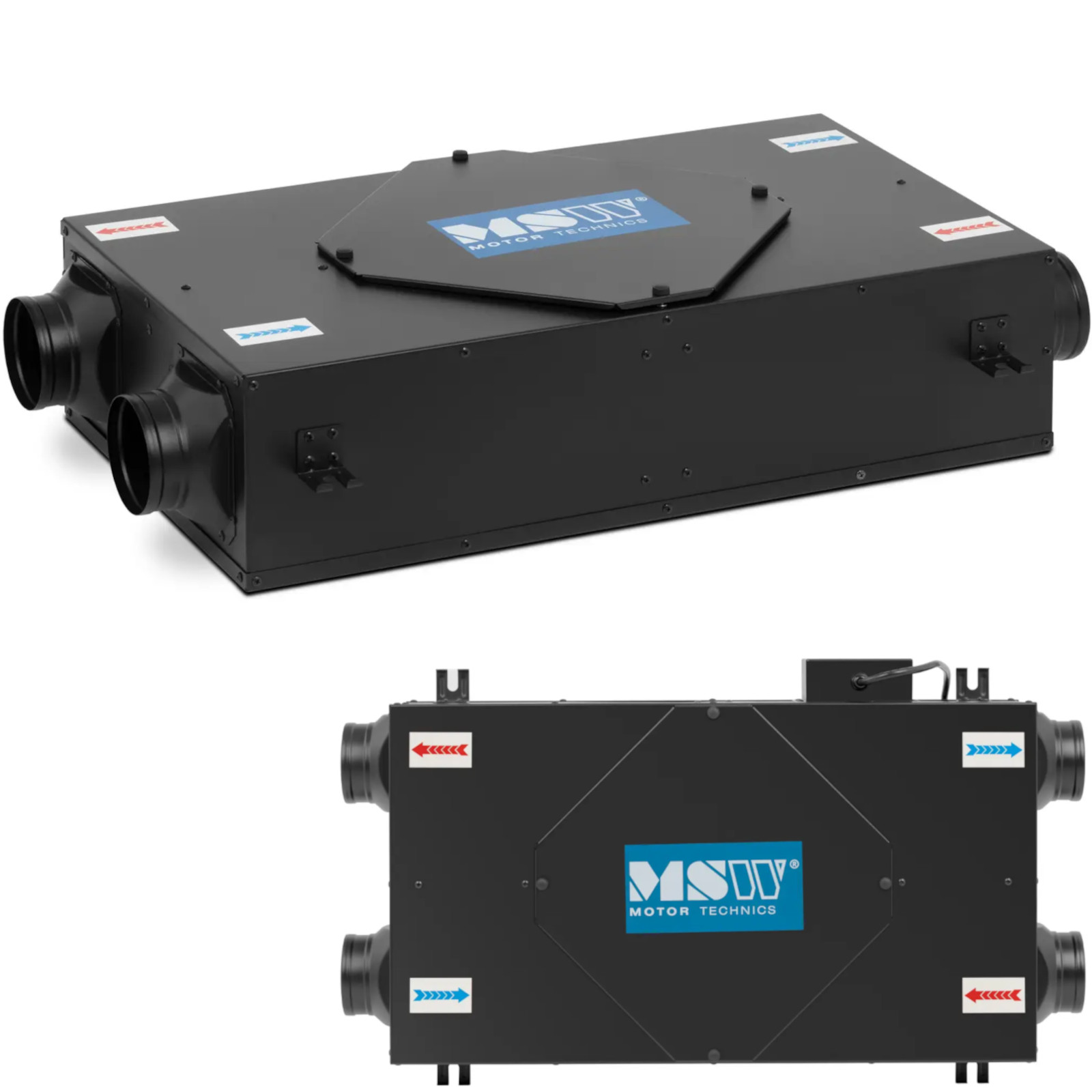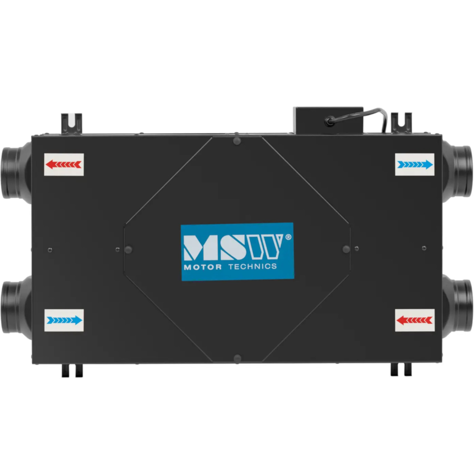 Powietrzny wymiennik ciepła marki MSW pozwoli ogrzać świeże i zwykle chłodniejsze powietrze z zewnątrz za pomocą powietrza wywiewanego ze środka. W efekcie mniej się ogrzewa, oszczędzając energię i wydając mniej pieniędzy. Bardzo kompaktowy krzyżowy wymiennik ciepła zachwyci nie tylko swoimi efektywnymi parametrami, ale także swoim designem. Sercem wymiennika jest moduł grafenowy, przez który prowadzone są dwa strumienie. Struktura nowoczesnego systemu pozwoli na optymalną wymianę ciepła do 65%. Dodatkowo powietrze przepłynie przez dwa filtry, które zapewnią czysty i przyjemny mikroklimat. Wloty i wyloty mają średnicę 146 mm, co zagwarantuje optymalny przepływ przez wymiennik ciepła. Powietrzny wymiennik można zastosować w pomieszczeniach o powierzchni 70 m² i wysokości do 3 m. W zależności od sytuacji za pomocą pokrętła można łatwo wybrać jeden z trzech poziomów: 210, 175 i 160 m³/h. Zapewni to równomierną wentylację oraz optymalną wymianę ciepła i wilgoci w urządzeniu. Wytrzymały silnik wentylatora z odzyskiem ciepła współpracuje z niewymagającą konserwacji miedzianą cewką prądu przemiennego o dużej niezawodności. Wymiennik ciepła jest również wyposażony w zabezpieczenie przed przegrzaniem. Piankowe panele wewnątrz obudowy skutecznie wyciszą generowany hałas.