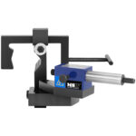Urządzenie umożliwia pracę pod kątem aż do 50°. Pionowe dostosowanie platformy z trzpieniem do wysokości 35 mm ułatwia dokładne wykonanie otworu. Dwuosiowy zacisk pasuje do rur o średnicy od 19 do 76 mm. Wytrzymała konstrukcja wykonana została ze stali a trzpień ze szlifowanej i polerowanej stali nierdzewnej. Urządzenie może zostać przykręcone do powierzchni roboczej lub umieszczone w imadle. Przystawka działa z wiertarką ręczną 1/2” i elektryczną (narzędzi nie ma w zestawie) i pozwala na wykonanie nacięć w rurach o różnych średnicach i kształtach. Urządzenie pasuje do szerokiej gamy okrągłych noży, pił do otworów i frezów z gwintem M12 i M15.