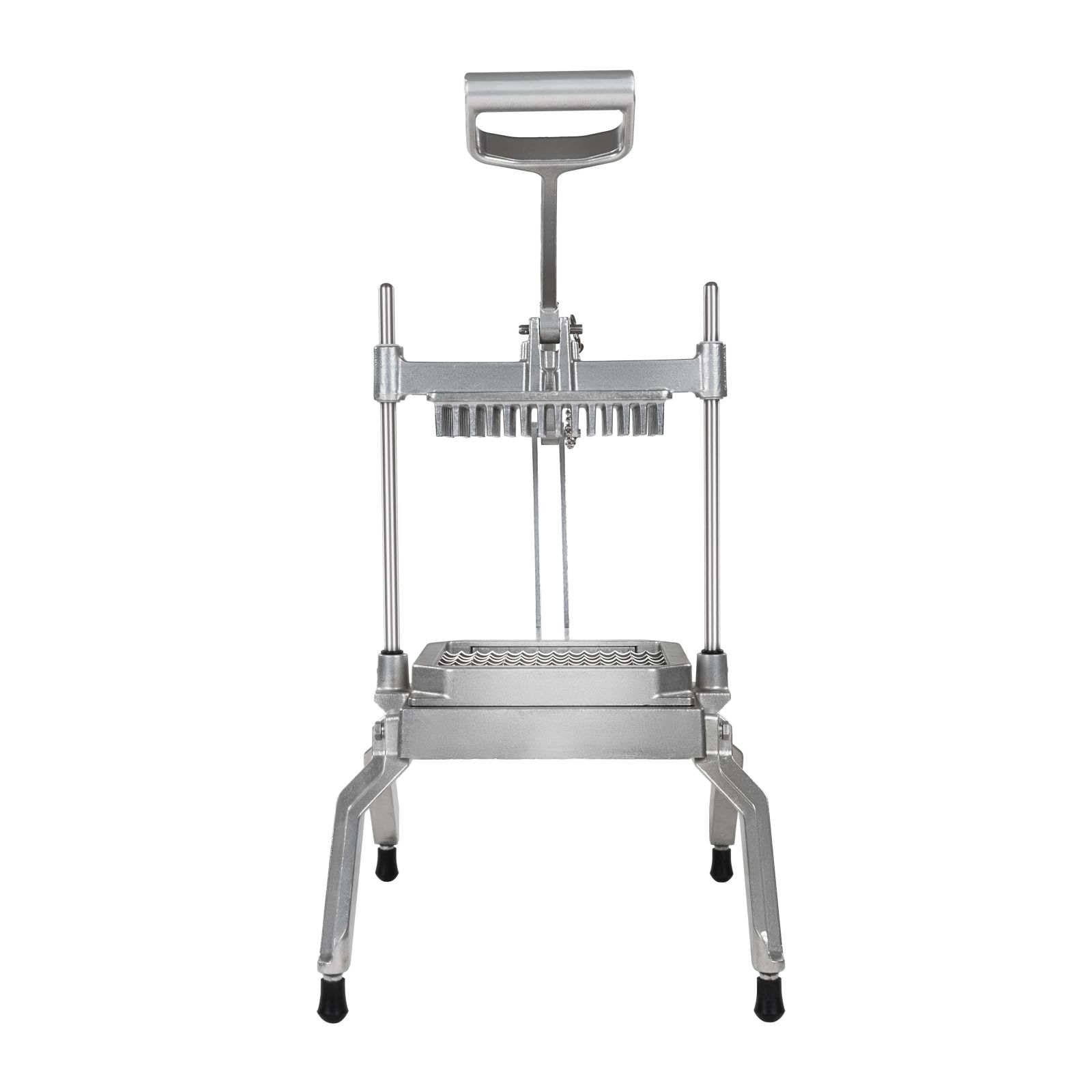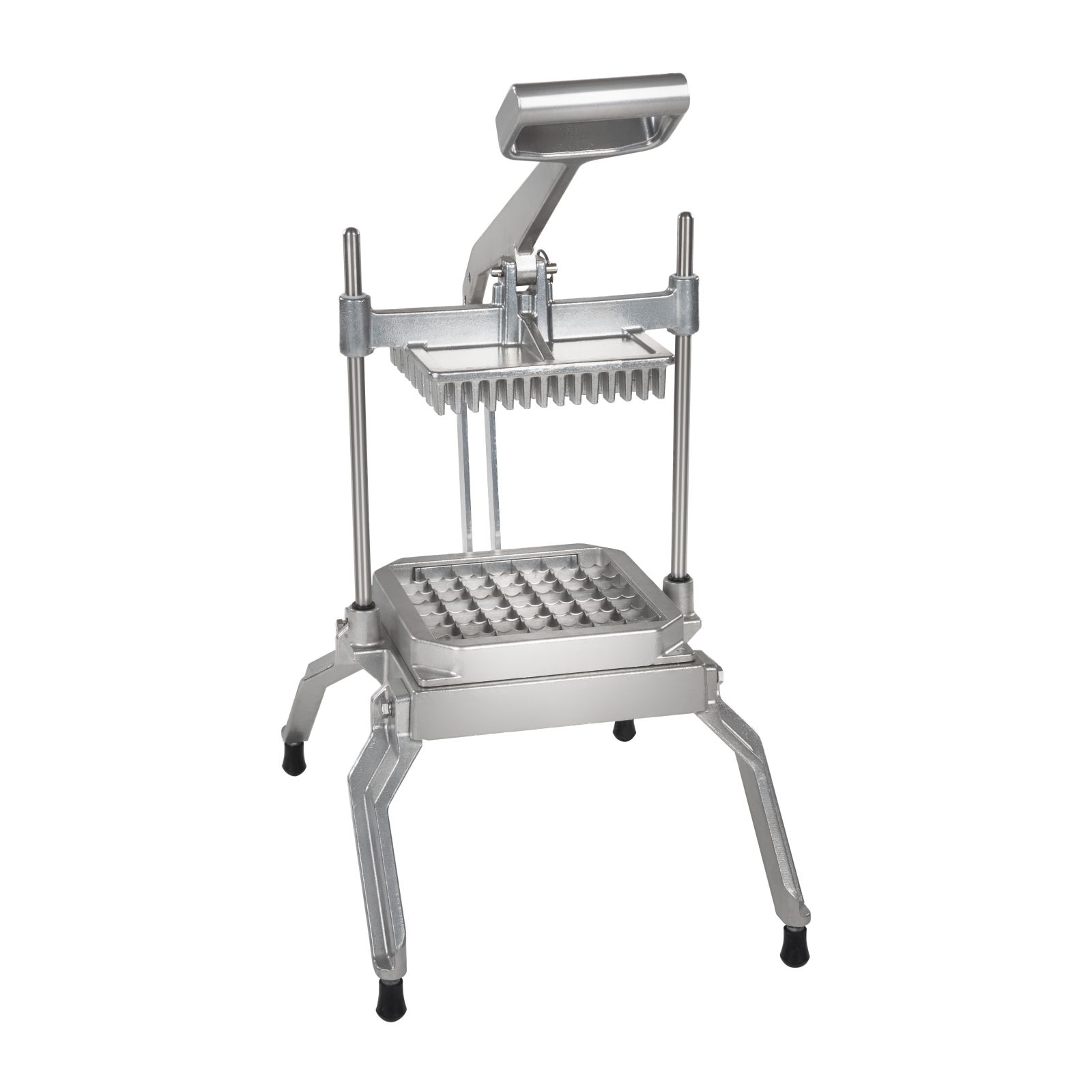 Profesjonalna, ręczna krajalnica wykonana w całości ze stali służąca do szybkiego krojenia owoców oraz warzyw na równe kostki o wymiarach 2,5×2,5cm.