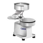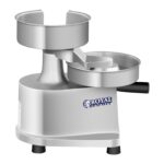 Profesjonalna praska do hamburgerów przyspieszy pracę w kuchni dzięki sprawnemu formowaniu kotletów o średnicy 15 cm. Praca na maszynce odbywa się jedynie za pomocą dźwigni, która wprawia w ruch mechanizm kształtujący mięso. Wajcha została pokryta antypoślizgowym PCV zapewniającym pewny chwyt, nawet gdy dłonie są tłuste.