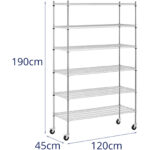 Regał magazynowy druciany ażurowy na kółkach 6 półek do 90 kg 120x45x189 cm