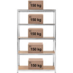 Regał magazynowy marki MSW pasuje idealnie do przechowywania ciężkich przedmiotów lub jako industrialny mebel w domu czy pracowni. Posiada wymiary 120 x 60 x 197 cm. Regał jest łatwy do ustawienia i złożenia. 5 jednolitych półek o regulowanej wysokości pozwala na umieszczenie różnorodnych rzeczy. Każda półka ma nośność 175 kg. Słupki zostały wykonane z galwanizowanej stali, są odporne na rdzę i wymagają niewielkiej konserwacji.