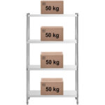 • – Maksymalne obciążenie regału do 200 kg ( 50 kg na półkę),