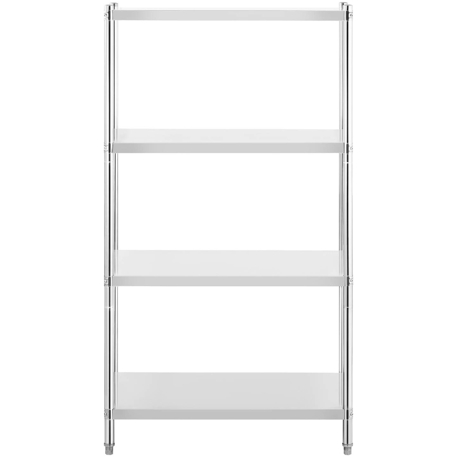 Regał magazynowy marki Royal Catering przyda się w każdym pomieszczeniu magazynowym. Wykonany ze stali nierdzewnej o wymiarach 100 x 60 x 180 cm i nośności każdej półki do 50 kg, regał nadaje się do kuchni gastronomicznych. Na 4 półkach można przechowywać wiele przyborów jednocześnie. Konstrukcja jest stabilna i trwała, dodatkowo łatwa w pielęgnacji, ponadto spełni najwyższe standardy gastronomiczne, więc jest odpowiedni do kontaktu z żywnością. Srebrny kolor nadaje meblowi elegancki wygląd i można go stosować w restauracjach, hotelach jak i przestrzeniach prywatnych, a jego montaż jest bardzo łatwy i nie wymaga dodatkowych narzędzi.