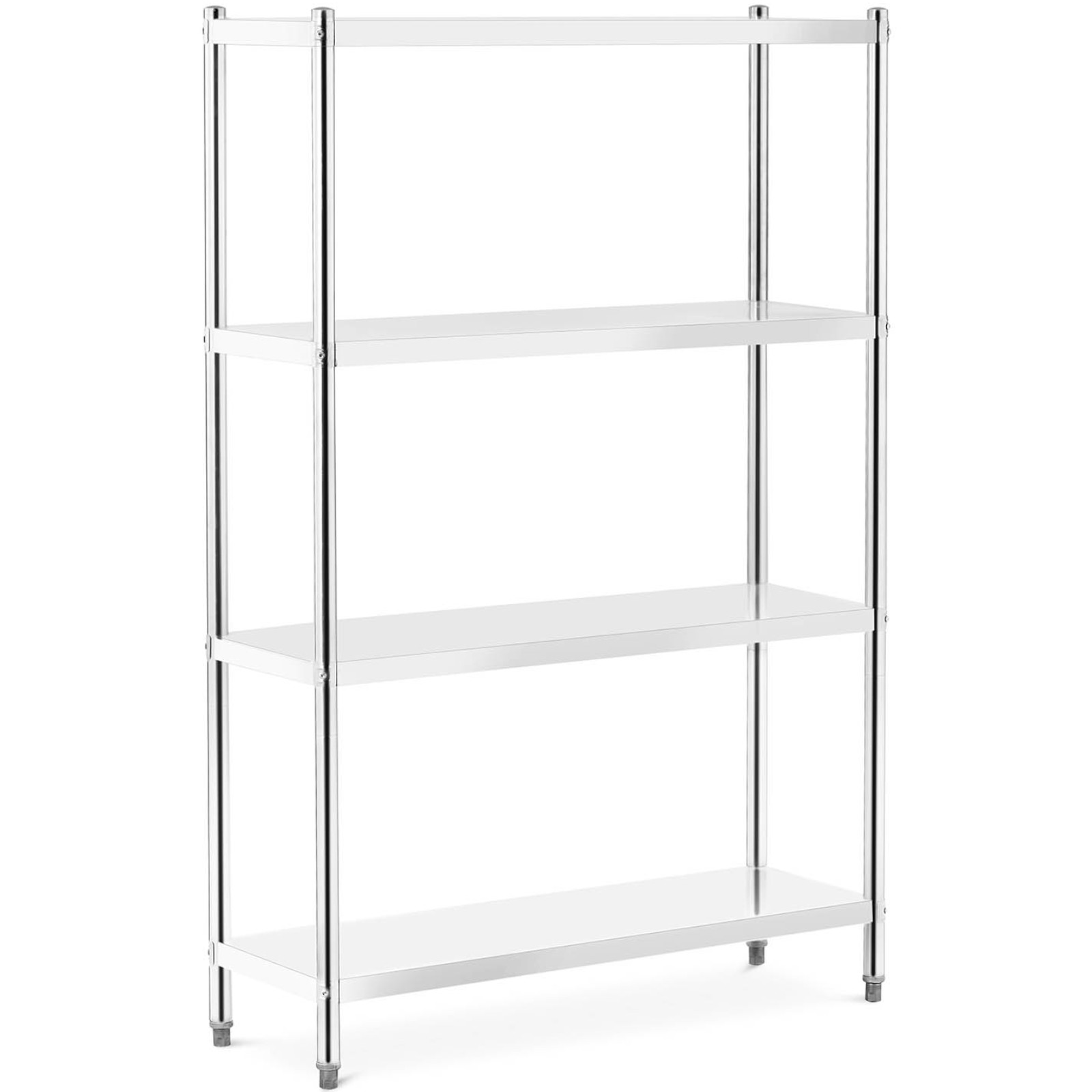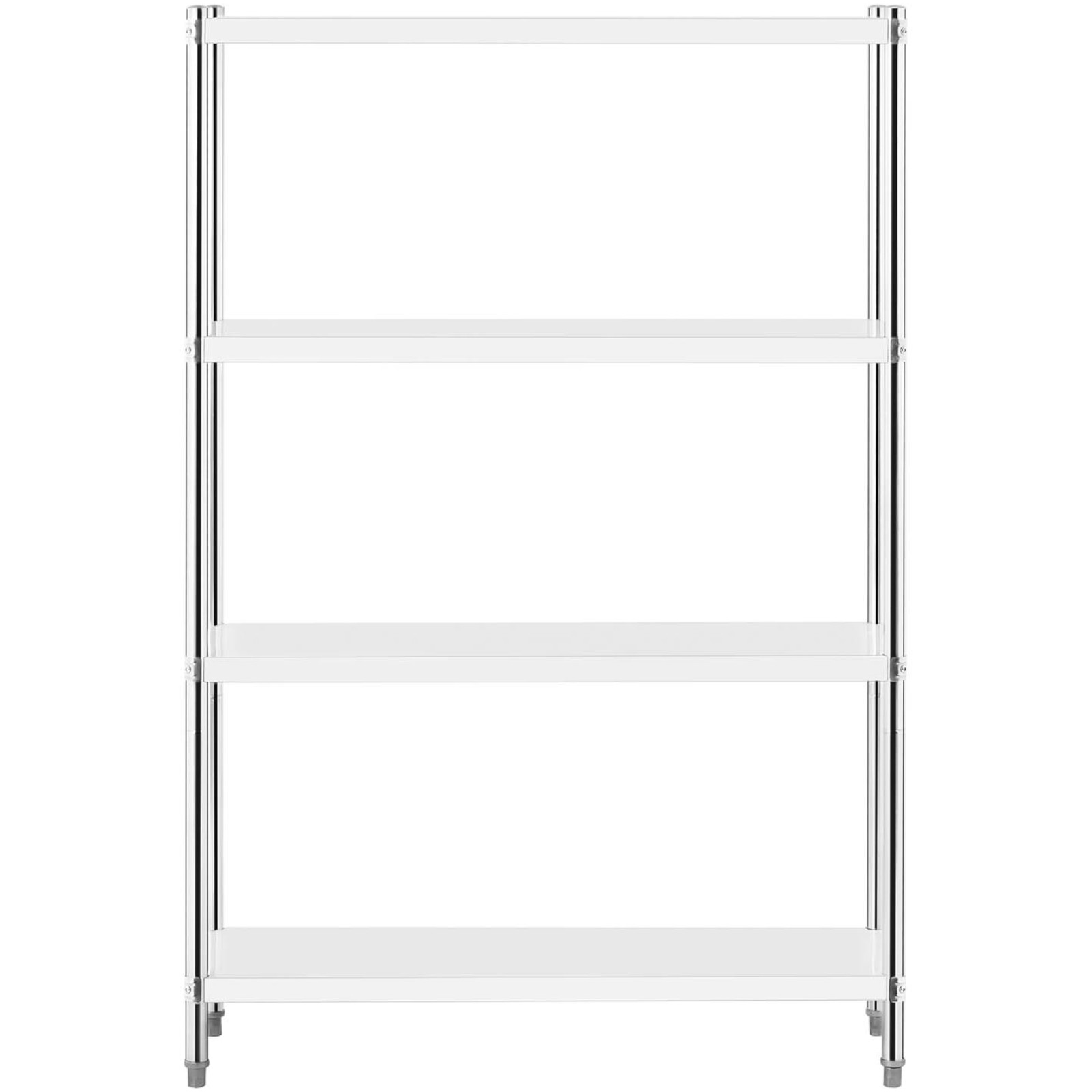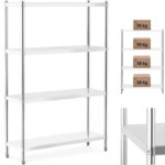 Regał magazynowy marki Royal Catering przyda się w każdym pomieszczeniu magazynowym. Wykonany ze stali nierdzewnej o wymiarach 120 x 40 x 180 cm i nośności każdej półki do 50 kg, regał nadaje się do kuchni gastronomicznych. Na 4 półkach można przechowywać wiele przyborów jednocześnie. Konstrukcja jest stabilna i trwała, dodatkowo łatwa w pielęgnacji, ponadto spełni najwyższe standardy gastronomiczne, więc jest odpowiedni do kontaktu z żywnością. Srebrny kolor nadaje meblowi elegancki wygląd i można go stosować w restauracjach, hotelach jak i przestrzeniach prywatnych, a jego montaż jest bardzo łatwy i nie wymaga dodatkowych narzędzi.