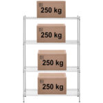 • Wytrzymałość – obciążenie do 250 kg na półkę (całkowita 1000 kg),