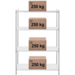 - – Wytrzymałość – obciążenie do 250 kg na półkę (całkowita 1000 kg),