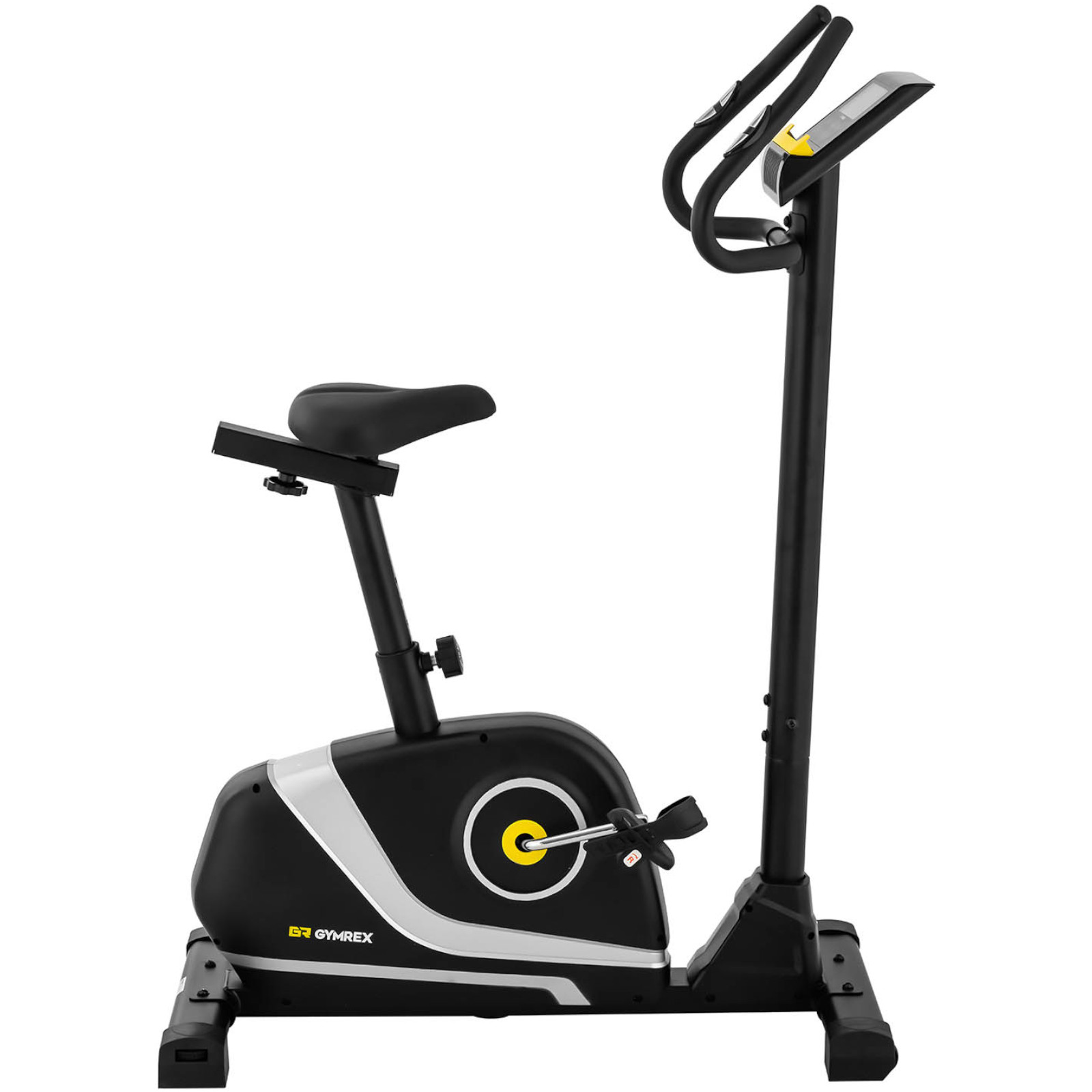 Rower stacjonarny marki Gymrex pozwala wzmocnić układ krążenia, wytrzymałość lub zmniejszyć wagę ciała. Siedzisko regulowane jest na wysokość 76 – 93,5 cm oraz wzdłuż do 10 cm w kierunku kierownicy. Uchwyt na smartfon lub tablet pozwala korzystać z urządzenia podczas ćwiczeń. Duże i wygodne siedzisko zapewnia wygodę podczas nawet długich sesji treningowych. 8 poziomów oporu pozwala na dopasowanie treningu do własnych możliwości. Wyważone pedały z paskami na stopy oraz masa koła zamachowego 4 kg zapewniają płynną i wygodną rotację kół. Duży wyświetlacz LCD (zasilany z sieci elektrycznej) pozwala śledzić czas, prędkość, liczbę kilometrów, waty, docelowe tętno i puls. Do wyboru jest także jeden z 24 programów treningowych. Niewielka waga i kółka transportowe pozwalają na łatwy transport i przechowywanie. Nośność urządzenia wynosi 110 kg.