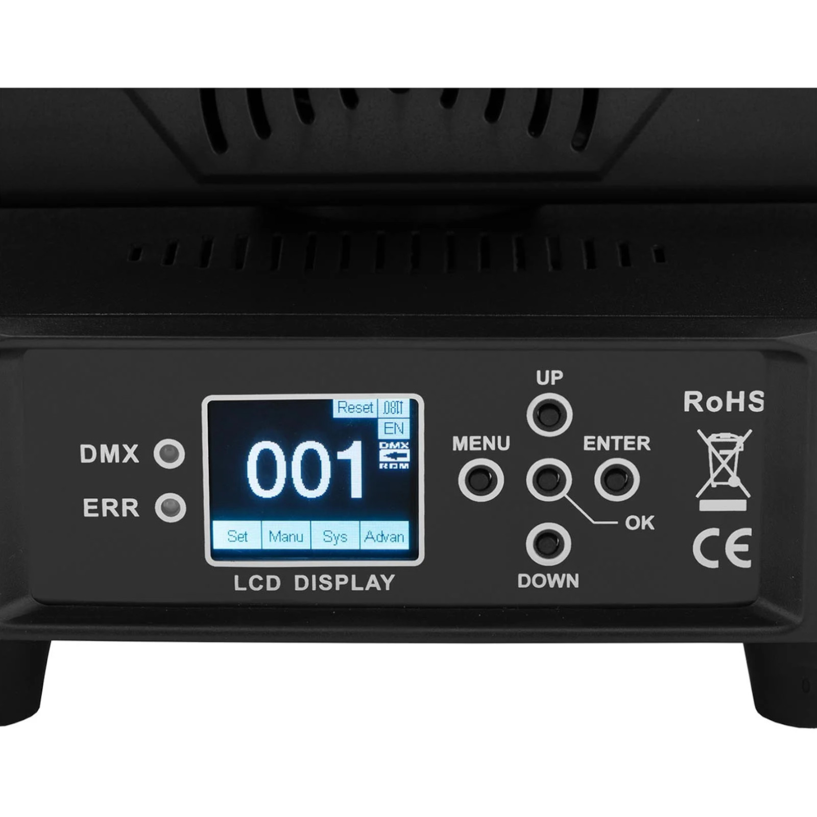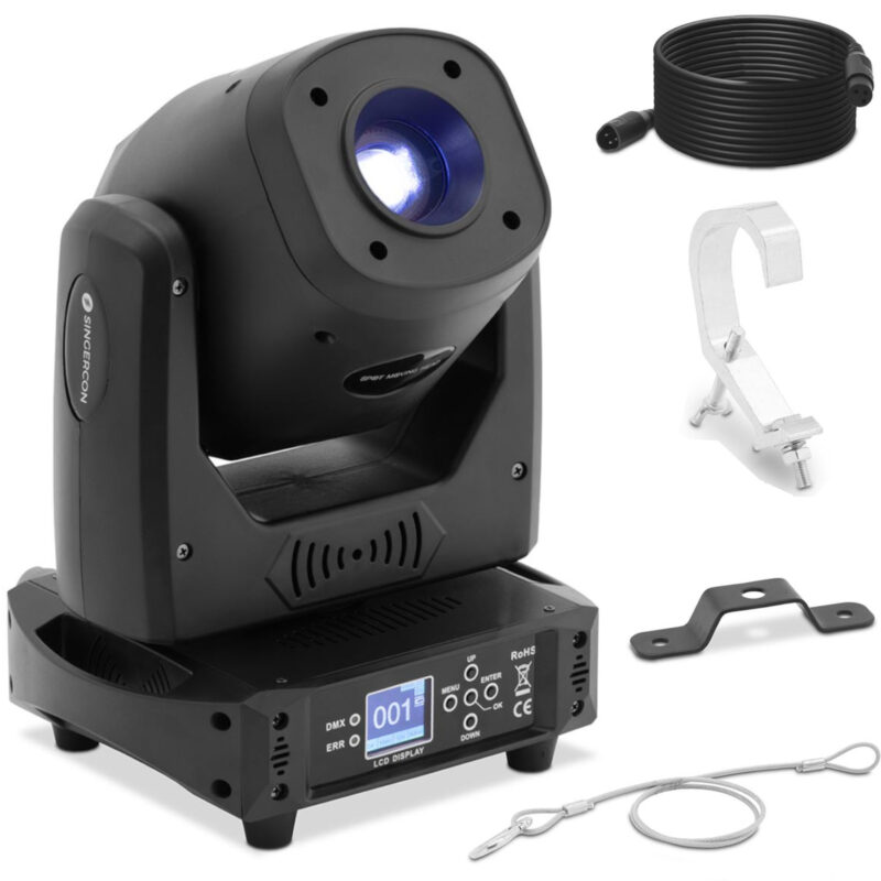 Ruchoma głowa Spot od Singercon sprawdzi się idealnie niezależnie od tego, czy jest to wesele, impreza taneczna, czy pokaz sceniczny. Sprzęt posiada klasyczne tryby pracy, takie jak DMX, Master/Slave, Auto czy Muzyka. Diody RGBW pozwolą rozświetlić pomieszczenie licznymi kolorami. Dzięki głowie LED można również sterować wiązkami światła. Urządzenie może pracować w trybie ręcznymi lub obracać się automatycznie. 13 + 1 kolorów i pryzmat z 3 płaszczyznami, który porusza się w obu kierunkach zapewnią dodatkowe efekty. Promienie 90 W LED kontroluje się poprzez kanał 14. Wyświetlacz LCD i przyciski sterujące zapewniają łatwą obsługę.