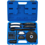 Ściągacz do łożysk piasty przedniej MSW-SPS-19 marki MSW to zestaw narzędzi do bezpiecznego montażu i demontażu zespołu łożyskowego piasty przedniego koła. Świetnie nadaje się do profesjonalnego użytku w warsztatach mechanicznych i serwisach pojazdów. Komplet pasuje do: Audi A2, Skoda Fabia 00-, VW Polo, VW Fox 05- i Seat Ibiza 02-. Wykonanie ze stali z antykorozyjnym pokryciem zapewnia narzędziom długą trwałość. Całość znajduje się w wygodnej walizce.