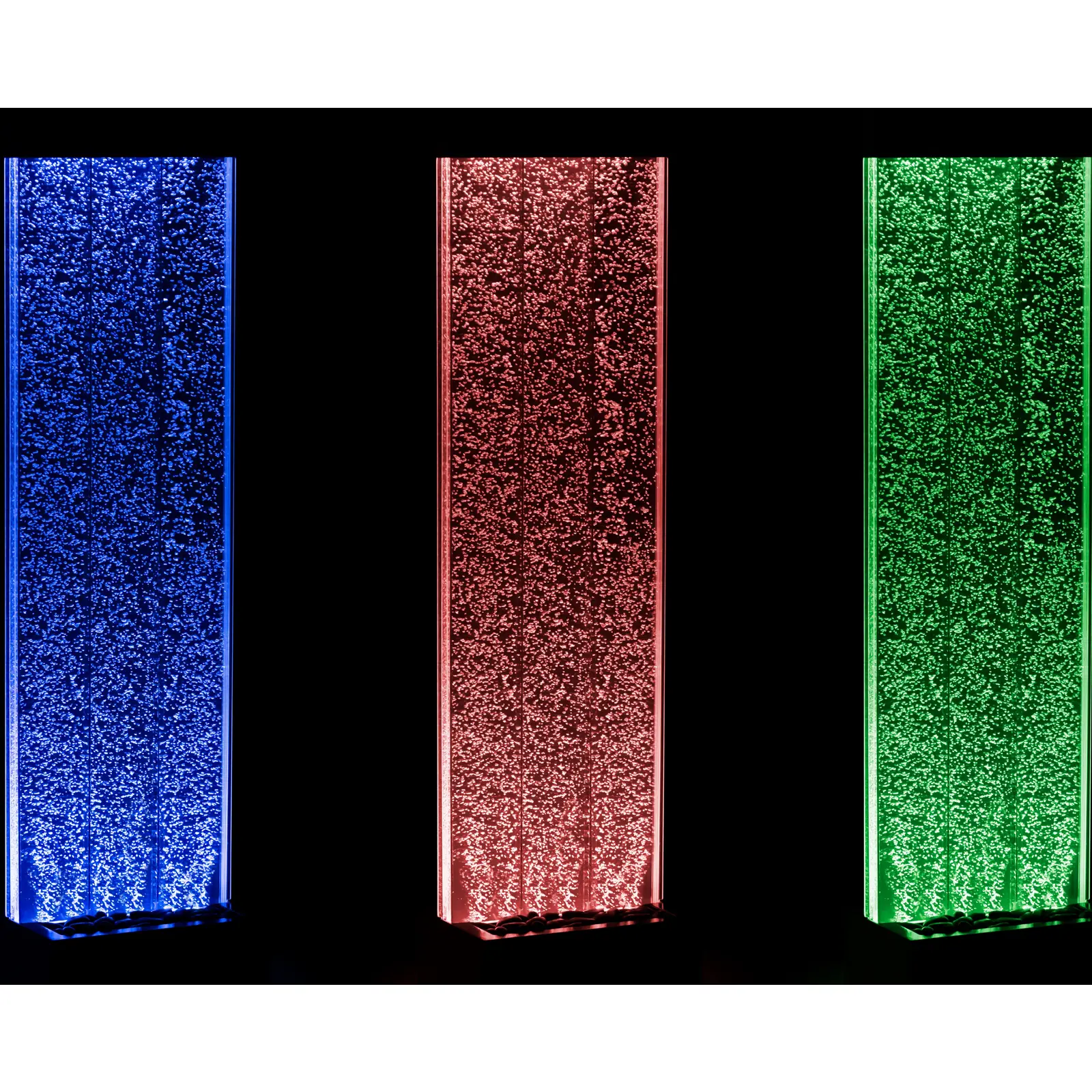 Efektowna ściana wodna marki Uniprodo pozwala nadać wyjątkowy akcent w lobby hotelowym, poczekalni czy przestrzeni biurowej. Gra ruchu i światła tworzy stymulujący nastrój w każdym pomieszczeniu i staje się ciekawą atrakcją. Kolumna wodna LED składa się z akrylowego korpusu wypełnionego wodą umieszczonego na mocnej stalowej podstawie. Dzięki wymiarom 390x260x200 mm jest ona niezwykle stabilna i bez problemu ustawisz ściankę wodną w pomieszczeniu. Przewód zasilający o długości 1.5 m zapewnia swobodę ruchów. Przezroczysty zbiornik napełnia się wodą za pomocą węża o długości 2500 mm. Ściana wodna stanowi zamknięty system, który jest chroniony przed parowaniem i rozpryskami przez odporną na korozję osłonę ze stali nierdzewnej. W podstawę wbudowana jest pompka, która w sposób ciągły powoduje unoszenie się pęcherzyków powietrza do wypełnionego wodą korpusu. Dzięki 39 zintegrowanym lampom LED bąbelki są skutecznie oświetlane zarówno od dołu, jak i od góry. Kontrola nad światłem odbywa się za pomocą pilota o zasięgu 3 m, więc z łatwością ustawia się różne kolory i efekty świetlne w ścianie wodnej. Oprócz licznych barw w kolorach RGB dostępne są nastrojowe oświetlenie migające, stroboskopowe, blaknące i wygaszające.