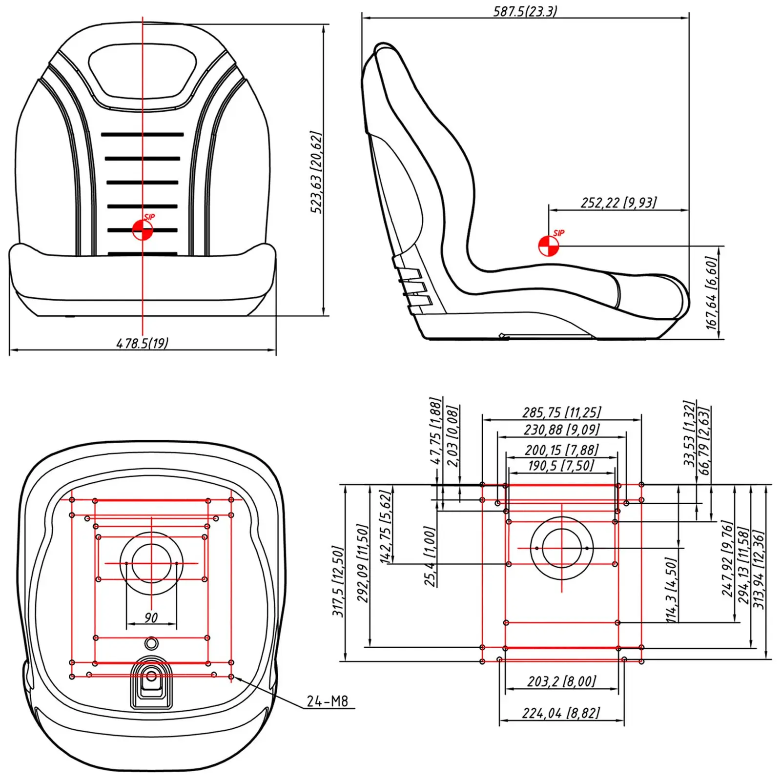 Siedzenie fotel do ciągnika traktorka kosiarki wózka widłowego 47 x 41 cm