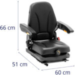 Siedzenie do ciągnika marki hillvert zapewnia komfort nawet na długich dystansach. Dzięki wyselekcjonowanym materiałom i solidnemu wykonaniu fotel idealnie nadaje się do ciągników lub kosiarek, a także wózków widłowych oraz innych maszyn. Zaleca się wymianę fotela po około 1000 roboczogodzinach. Dzięki uniwersalnemu i łatwemu montażowi można go wymienić sprawnie i szybko. Wyściółka z pianki zachowuje swój kształt również pod dużym obciążeniem. Siedzisko o wymiarach 42 x 47 cm i udźwigu 130 kg zapewnia komfort nawet po wielu zastosowaniach. Konstrukcja ramy wykonana jest ze stali, co gwarantuje długą żywotność siedzenia. Powierzchnia PVC jest wyjątkowo wytrzymała, wodoodporna i jednocześnie łatwa do czyszczenia. Siedzenie posiada zawieszenie o wysokości 50 mm oraz wygodne podłokietniki. Całe siedzisko można przesunąć do przodu lub do tyłu łącznie o 16,5 cm oraz ustawić oparcie pod kątem 30 – 90°. Wyposażenie modelu uzupełnia pas bezpieczeństwa