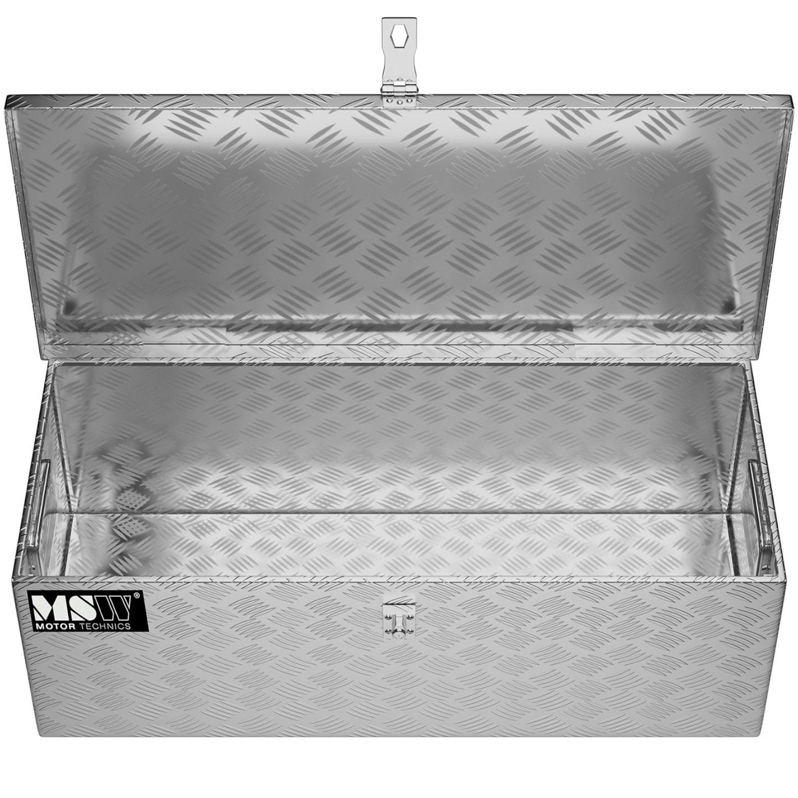 Skrzynia narzędziowa marki MSW sprawdzi się w rolnictwie, przemyśle, warsztatach, garażach i wszędzie gdzie zachodzi konieczność przechowywania i transportu narzędzi. Konstrukcja skrzyni wykonana została z aluminium, jest lekka, odporna na korozję oraz trwała i nie toksyczna, obojętna na większość środków chemicznych. Zapewnia ochronę przyrządów przed promieniami słonecznymi, wilgocią czy uszkodzeniami mechanicznymi. Ścianki mają grubość 1,3 mm. Duża pojemność 48 litrów pozwala zmieścić wiele przedmiotów. Posiada blokadę, która działa po zamknięciu wieka i przekręceniu jej o 90° Pokrywa z nitowanymi zawiasami i zamknięciem na zatrzaski gwarantuje bezpieczeństwo przyrządów. Ergonomiczna rączka zapewnia łatwość transportu.