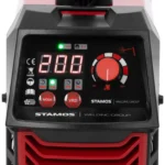 Spawarka MMA VENUX 200A marki Stamos Germany zachwyca efektywnymi parametrami w kompaktowej obudowie. Urządzenie opiera się na nowoczesnej technologii inwerterowej IGBT, która niezawodnie i szybko przełącza wszystkie parametry. Tryb TIG Liftarc pozwala pracować z gazem osłonowym za pomocą odpowiedniego uchwytu spawalniczego (brak w zestawie). Dzięki temu można jeszcze wygodniej i efektywniej korzystać z urządzenia MMA. Wyświetlacz LED i pokrętło pozwalają precyzyjnie ustawić prąd spawania do 140 A oraz przełączyć się na tryb pracy TIG Liftarc. Ponadto spawarka MMA pozwala równomiernie łączyć metalowe elementy przy cyklu pracy 60%. Po wybraniu funkcji VRD można bezpiecznie spawać nawet w wilgotnym otoczeniu dzięki redukcji napięcia. Spawanie TIG zachwyca szczególnie czystymi spoinami. TIG Liftarc nie zakłóca działania wrażliwych urządzeń elektronicznych znajdujących się w pobliżu, takich jak telefony komórkowe, komputery lub systemy sterowania. Uchwyt pozwala łatwo przenieść urządzenie. Niezależnie od tego, czy używane jest do metali takich jak stal, żelazo, żeliwo, nikiel, miedź czy stopy miedzi, urządzenie wykaże się doskonałą wydajnością przy każdym zadaniu, nawet na zewnątrz. Wytrzymała stalowa obudowa jest szczególnie odporna nawet w wymagających warunkach.
