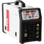 Spawarka wielofunkcyjna marki Stamos Welbach pozwala na spawanie techniką MIG/MAG, TIG, czy MMA. Maszyna z nowoczesnym falownikiem IGBT sprawdzi się także jako przecinarka plazmowa. Parametry pracy ustawiane są na przejrzystym, cyfrowym panelu z dwoma ekranami LED. Pozwala on określić technikę, prąd spawania oraz czas przed wypływem gazu i po nim. Panel pozwoli też na wybranie wstępnie ustawionych parametrów, dzięki którym osiągniesz najlepsze wyniki. Urządzenie posiada funkcję synergii, w której po zmianie jednego parametru spawania pozostałe są odpowiednio dostosowywane. Do spawania metodą MIG/MAG używane są szpule o średnicy do 200 mm, aby zapewnić długi czas pracy. Podajnik przeznaczony jest do drutów o średnicy 0,8 – 1,2 mm. Prędkość regulowana jest w zakresie 2-15 m/min. Spawarka wielofunkcyjna umożliwia spawanie metodą TIG DC i uzyskanie wysokiej jakości spoin w różnych pozycjach. Dzięki zajarzeniu o wysokiej częstotliwości od samego początku uzyskuje się stabilny łuk i spawa z dużą mocą do 200 A. Prąd spawania ustawiany poniżej 110 A pozwala na pracę bez przerw. Dla obróbki cienkich blach od 0,5 mm, należy włączyć funkcję Puls i połączyć prawie wszystkie metale samotopliwe, takie jak stal, stal nierdzewna, miedź lub nikiel. Elementy można łączyć w różnych pozycjach, czy to w pionie, w poziomie, czy nad głową. Palnik plazmowy z łatwością przetnie metale o grubości do 15 mm przy maksymalnym prądzie 50 A. Łuk plazmowy generowany jest za pomocą sprężonego powietrza. Chłodzi ono palnik podczas cięcia i pozostawia czystą krawędź. Podobnie jak w przypadku metod spawania w osłonie gazowej, tutaj też masz do dyspozycji tryb 2-taktowy lub 4-taktowy. Łuk pilotujący zajarzany jest z wysoką częstotliwością. Skuteczny nawet bez gazu podczas spawania elektrodami. Spawanie elektrodą otuloną (MMA) pozwala na pracę na zewnątrz i przy silnym wietrze. Metoda działa bez dodatkowego gazu. Spawarka wielofunkcyjna dostarcza bardzo stabilny prąd – idealny do dobrych wyników. Funkcja VDR zapewnia większe bezpieczeństwo podczas spawania MMA, szczególnie w wilgotnym środowisku. Funkcja Hot Start uzyskuje zwiększony prąd spawania przez krótki czas po rozpoczęciu pracy. W ten sposób spawa się stabilnie i czysto.