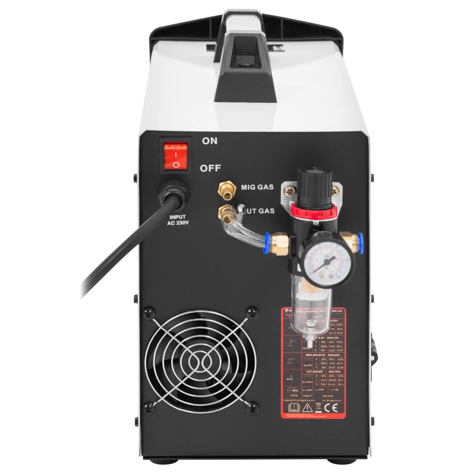 - – Cyfrowy panel sterowania z dwoma pokrętłami do dokładnego ustawiania wszystkich parametrów spawarki wielofunkcyjnej 4w1,