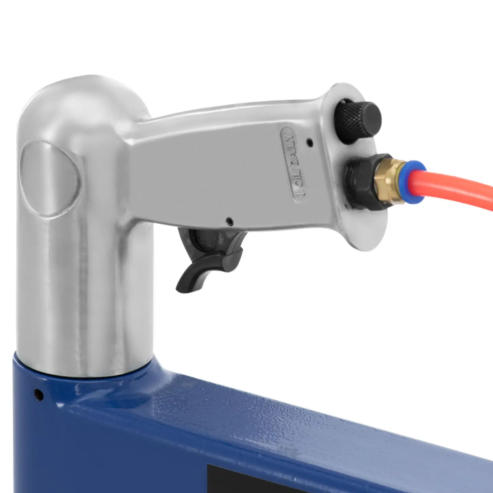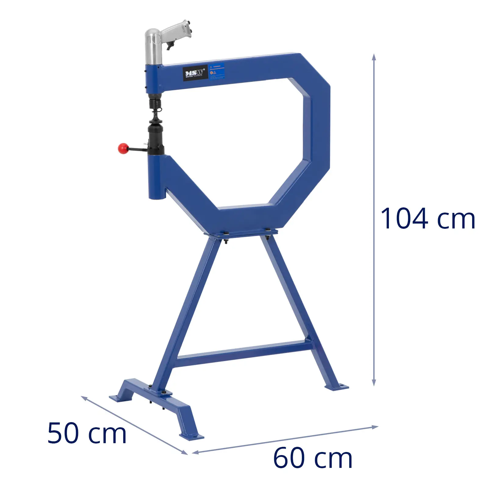 - – Przy ciśnieniu roboczym 6,9 bar spęczarka do blachy osiągnie regulowaną prędkość od 875 do 1350 uderzeń na minutę,
