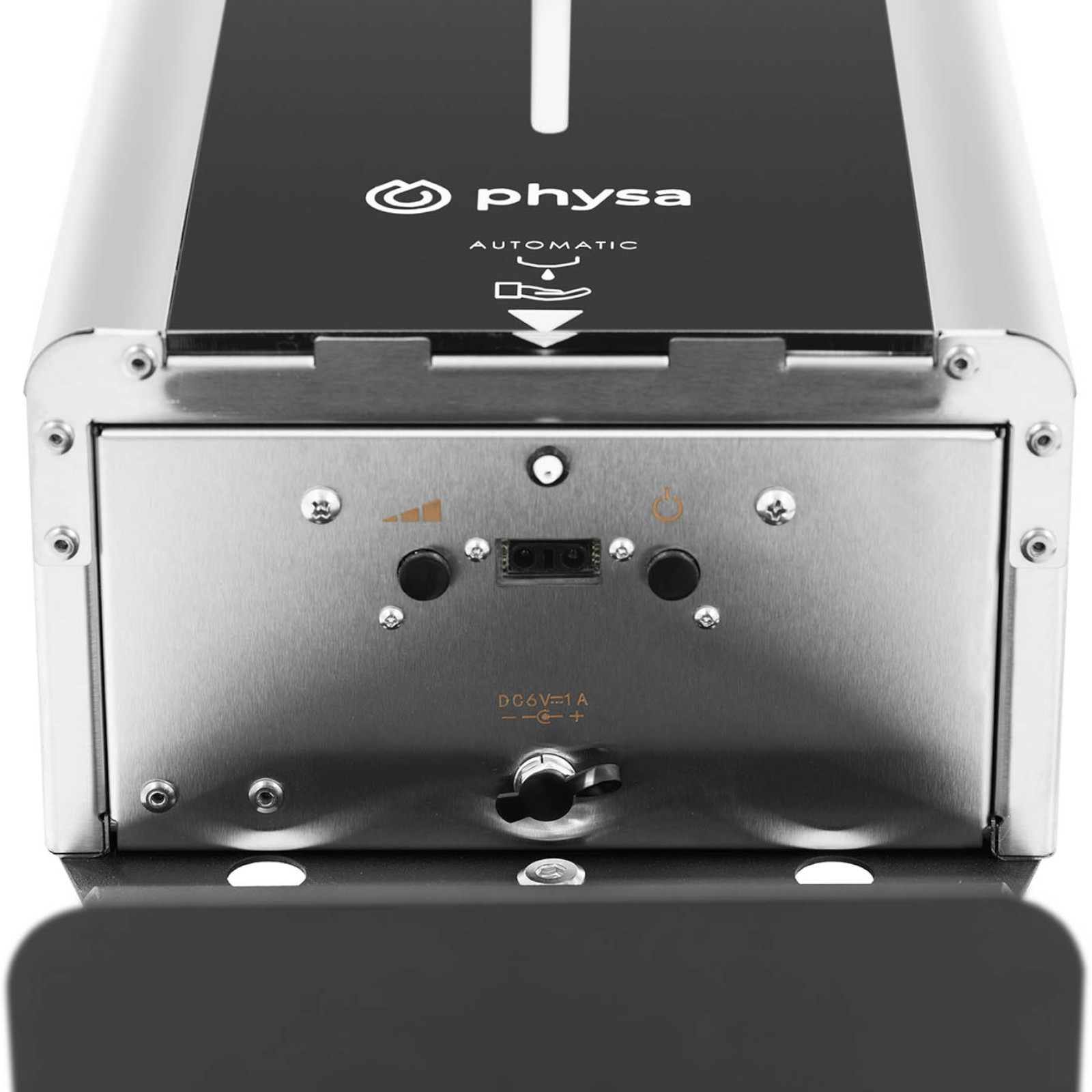 Stacja dezynfekująca marki Physa sprawdzi się do odkażania rąk przy wejściu do hoteli, restauracji czy innych punktów użyteczności publicznej. Sprawdzi się wszędzie tam, gdzie montaż na ścianie nie jest możliwy. Dołączona butelka z pompką ma pojemność 1 l. Wysokość stacji regulowana jest w zakresie 100-140 cm. Czujnik ruchu pozwala na zachowanie higieny. Urządzenie może być zasilane bateriami (brak w zestawie) lub zasilaczem. Obudowa jest zamykana, co ogranicza dostęp osobom nieupoważnionym. Podłużny wskaźnik poziomu napełnienia ułatwia kontrolę nad ilością płynu. Stacja wykonana została z higienicznych materiałów (stal nierdzewna, akryl, stal).