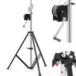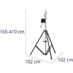 Statyw marki Singercon sprawdzi się na scenie, obok stanowiska DJ-a, w sali imprezowej lub w teatrze. Jego nośność wynosi 80 kg. Wysuwany element statywu oświetleniowego można zamocować na wysokości 1,65-4,1 m za pomocą śrub. Dzięki średnicy 1700 mm sprzęt jest dobrze wyważony po rozłożeniu, nawet przy maksymalnym obciążeniu. Zawsze zapewnia stabilne oparcie. Trzy nylonowe nakładki na nóżkach chronią podłogę, a także zapobiegają ślizganiu. Składana i wysuwana konstrukcja oraz niewielka waga pozwalają z łatwością przewieźć statyw na każdą imprezę. Srebrna rama wykonana ze stali z aluminiową podstawą jest nie tylko lekka, ale także szczególnie odporna i trwała.